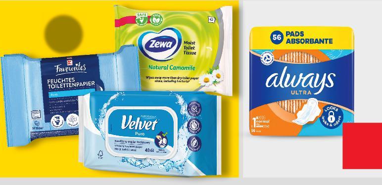 Kostki do WC różne rodzaje 3 x 50 g opakowanie (=1 szt. 4,00) ALWAYS ULTRA Podpaski różne rodzaje 56–32 szt. opakowanie (=1 szt. 0,50–0,87)