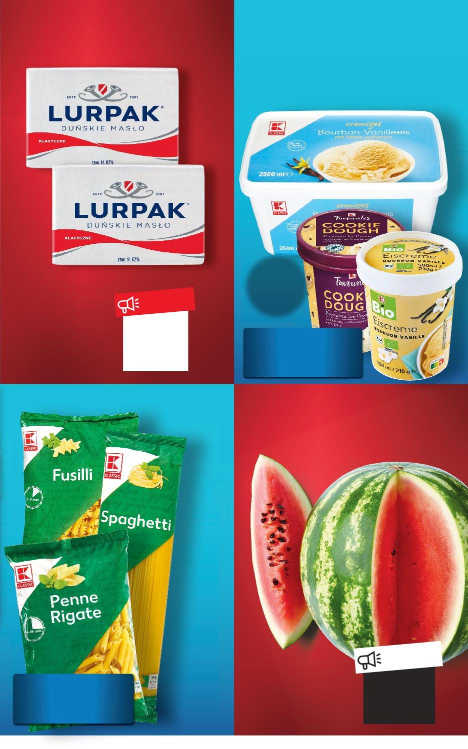 WTOREK 8.08 ŚRODA 9.08 CZWARTEK 3.08 PIĄTEK 4.08 Oferta ważna od 3.08.2023 do 9.08.2023, chyba że na stronach gazety wskazano inaczej, lub do wyczerpania zapasów. Sprzedaż w ilościach detalicznych. Wszystkie podane ceny wyrażone są w złotych polskich. -36% 5,99 cena sprzed pierwszej obniżki 9,49 TANIO tylko 1,49 KUP GRATIS 1+1 TAŃSZE WSZYSTKIE LODY FAMILIJNE NASZYCH MAREK WŁASNYCH Tylko z kartą Tylko z kartą Kaufland Card ARLA LURPAK Masło 200 g opakowanie (=100 G 3,00) 2500 ml 500 ml DO OD Arbuz luzem 1 kg Makaron z mąki z pszenicy durum wybrane rodzaje 500 g opakowanie KUP GRATIS 1+1 TAŃSZY Tylko z kartą Tylko z kartą Kaufland Card S7-PL-KW31-LFT-BOHATER_DNIA_RE-1020-10 7