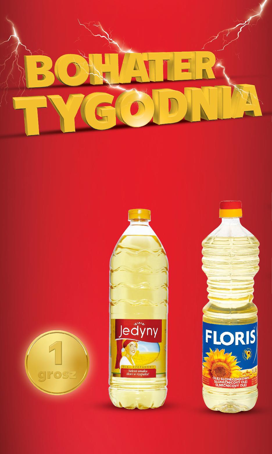 PRZEZ CAŁY TYDZIEŃ OD 3.08 DO 9.08 Cena naliczana przy kasie. * Produkty wyłączone z akcji na www.kaufland.pl/wykluczenia Zrób zakupy innych artykułów za min. a wybrany olej kupisz za 200 zł* W ofercie Olej rzepakowy Jedyny 1 l i Olej słonecznikowy Floris 1 l. 1 grosz! lub S8-PL-KW31-LFT-BOHATER_TYGODNIA_LI-1020-10 8
