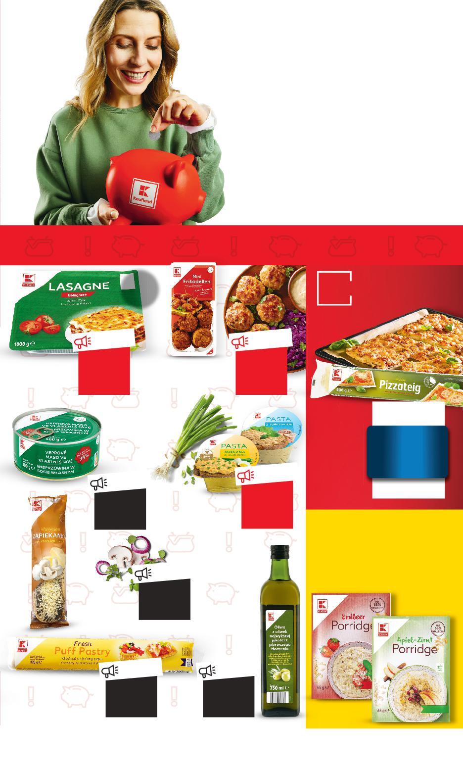 WIĘCEJ OSZCZĘDNOŚCI Z KAUFLANDEM! KUP 2 MNIEJ ZAPŁAĆ KUP GRATIS 2+1 przy zakupie 4 szt. /sztuka najniższa cena z 30 dni przed obniżką -25% cena regularna 1,23 1,65 1,65 Rabat naliczany przy kasie. przy zakupie 2 szt. /sztuka cena sprzed pierwszej obniżki -17% cena regularna 4,49 5,45 5,45 Rabat naliczany przy kasie. przy zakupie 2 szt. /sztuka cena sprzed pierwszej obniżki -33% cena regularna 3,99 5,99 5,99 TANIO tylko 14,99 TANIO tylko 8,99 KUP 2 MNIEJ ZAPŁAĆ PRINCE POLO XXL Wafel w czekoladzie wybrane smaki 50 g sztuka (przy 4 szt. =100 G 2,46) (cena reg. =100 G 3,30) DANONE FANTASIA PREMIUM Jogurt wybrane rodzaje 99–120 g opakowanie OSM PIĄTNICA Twaróg wiejski różne rodzaje 250 g opakowanie (przy 2 szt. =1 KG 17,96) (cena reg. =1 KG 21,80) MORLINY Kiełbasa biwakowa 1 kg PROSTE HISTORIE Pizza różne rodzaje 340–435 g opakowanie (=1 KG 26,44–20,67) PRODUKT MROŻONY