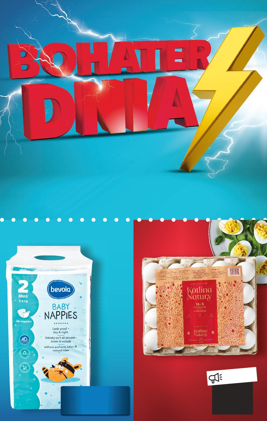 CODZIENNIE OFERTA SPECJALNA! Przy zakupie powyżej 5 szt. obowiązuje cena regularna. * Produkty wyłączone z akcji na www.kaufland.pl/wykluczenia PONIEDZIAŁEK 7.08 SOBOTA 5.08 TANIO tylko 11,99 bevola® Baby Pieluchy różne rodzaje 35–56 sztuk opakowanie KUP GRATIS 1+1 TAŃSZE Tylko z kartą Tylko z kartą Kaufland Card KOTLINA NATURY Jaja z chowu ściółkowego klasa M 15 + 5 sztuk opakowanie (=1 SZT. 0,60) S6-PL-KW31-LFT-BOHATER_DNIA_LI-1020-10 6