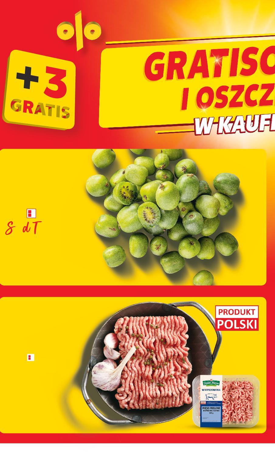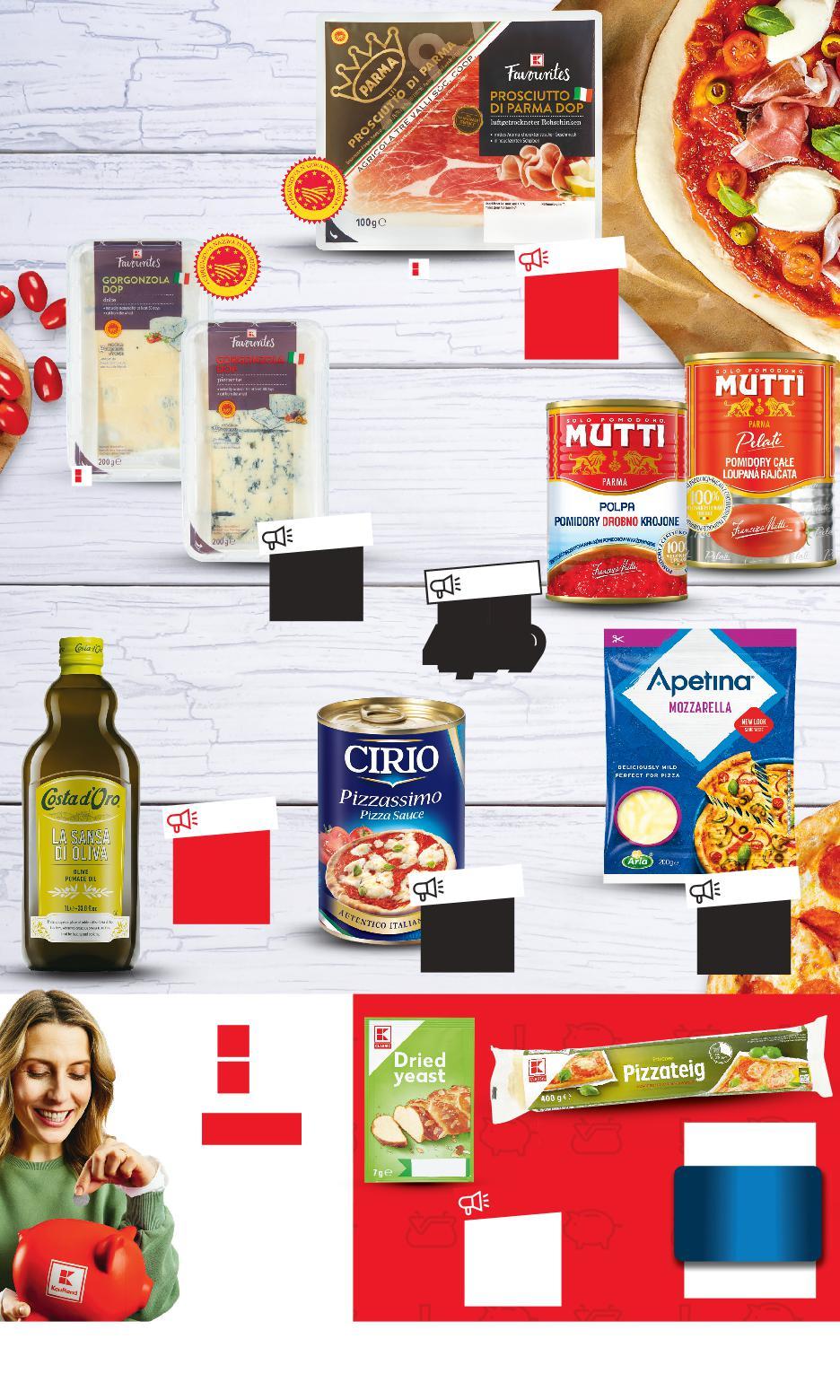 KUP GRATIS 2+1 Tylko z kartą Tylko z kartą Kaufland Card PRODUKT MROŻONY Pizza z pieca różne rodzaje 330–355 g opakowanie (przy 3 szt. z kartą =1 KG 18,15–16,87) (cena reg. bez karty =1 KG 27,24–25,32) KUP GRATIS 2+1 KUP GRATIS 2+1 Tylko z kartą Tylko z kartą Kaufland Card Tylko z kartą Tylko z kartą Kaufland Card Jogurt naturalny 0% tł. 150 g opakowanie (przy 3 szt. z kartą =1 KG 4,40) (cena reg. bez karty =1 KG 6,60) cena sprzed pierwszej obniżki -33% cena regularna bez karty 0,99 0,99 przy zakupie 3 szt /sztuka 0,66* * Cena naliczana przy kasie. cena sprzed pierwszej obniżki -33% cena regularna bez karty 8,99 8,99 przy zakupie 3 szt /sztuka 5,99* * Cena naliczana przy kasie. Ser Mozzarella classic 125 g opakowanie (przy 3 szt. z kartą =1 KG 15,92) (cena reg. bez karty =1 KG 23,92) cena sprzed pierwszej obniżki -33% cena regularna bez karty 2,99 2,99 a przy zakupie 3 szt. /sztuka 1,99* * Cena naliczana przy kasie. S8-PL-KW40-LFT-ONLINE_OWIJA_PANO_4_LI-1020-10 8