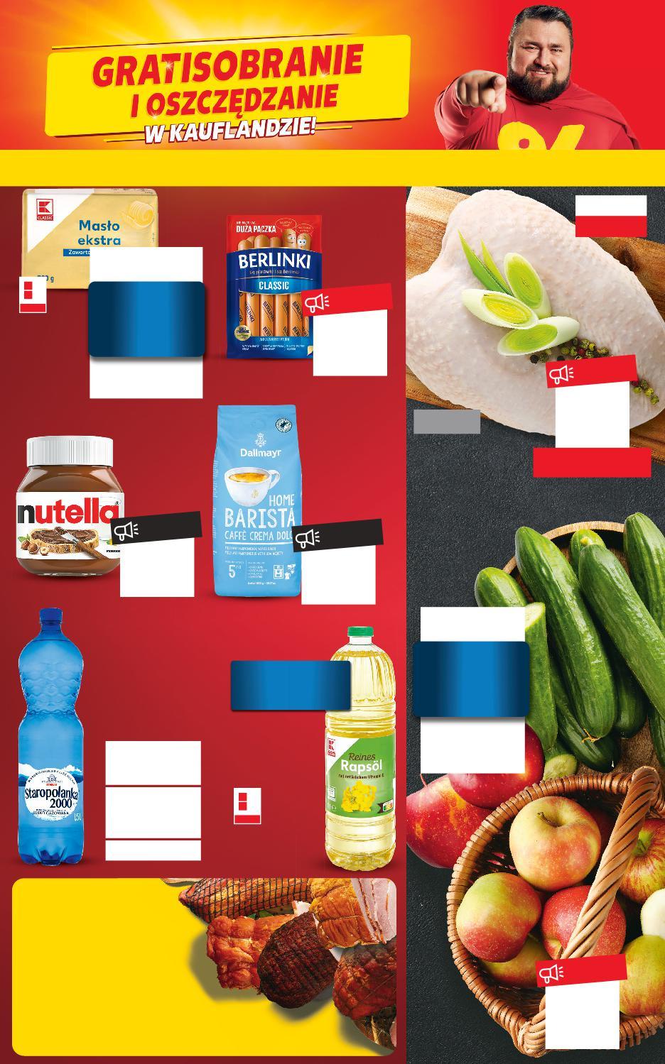 Oferta ważna od 9.10 do 11.10.2023, chyba że na stronach gazety wskazano inaczej, lub do wyczerpania zapasów. Sprzedaż w ilościach detalicznych. Wszystkie podane ceny wyrażone są w złotych polskich. Uwaga! Nie łączymy ofert! Oferta z gazety nie łączy się z innymi ofertami przeprowadzanymi przez Kaufland. Zdjęcia poglądowe. Lista artykułów biorących udział w akcji na www.kaufland.pl/akcje MOCNY START OD PONIEDZIAŁKU 9.10 DO ŚRODY 11.10 KUP 6 MNIEJ ZAPŁAĆ TANIO tylko 9,49 TANIO 11,99* CENA powyżej 3 kg 15,99 CENA do 3 kg * Oferta poza stałym asortymentem, dostępna wyłącznie do wyczerpania zapasów. Cena naliczana przy kasie. Rabat naliczany przy kasie. przy zakupie 6 szt. /sztuka najniższa cena z 30 dni przed obniżką -16% cena regularna 1,99 2,39 2,39 TANIO tylko 44,99 * Cena wyłącznie na pierwszy paragon dziennie, naliczana przy kasie cena bez karty lub powyżej 3 szt. z kartą cena sprzed pierwszej obniżki 5,49 Z KARTĄ -36% do 3 szt. 3,49* -27% 3,99 cena sprzed pierwszej obniżki 7,99 -27% 10,99 * Cena naliczana przy kasie. cena bez karty cena sprzed pierwszej obniżki -35% 4,49 a -42% Z KARTĄ 6,99 3,99* -42% 1,99 cena sprzed pierwszej obniżki 3,49 Polskie jabłka Jonagold, Gala, luzem 1 kg FERRERO NUTELLA Krem 350 g słoik (=100 G 2,71) (przy 6 szt. =1 L 1,33) (cena reg. =1 L 1,59) STAROPOLANKA 2000 Woda mineralna różne rodzaje 1,5 l butelka Ogórki zielone luzem 1 kg Pierś z polskiego kurczaka z kością, ze skórą 1 kg STOISKO Z OBSŁUGĄ Z GRUNTU POLSKIE MORLINY Parówki Berlinki 500 g opakowanie (=1 KG 15,98) DALLMAYR HOME BARISTA Kawa ziarnista wybrane rodzaje 1000 g opakowanie (=100 G 4,50) Masło ekstra 200 g opakowanie (z kartą =100 G 1,75) (bez karty =100 G 2,00) -20% od od ceny sprzed pierwszej obniżki WYBRANE WĘDLINY Z NASZEJ LADY Olej rzepakowy 1 l butelka KUP GRATIS 1+1 Tylko z kartą Tylko z kartą Kaufland Card S72-PL-KW40-LFT-RS-1020-10