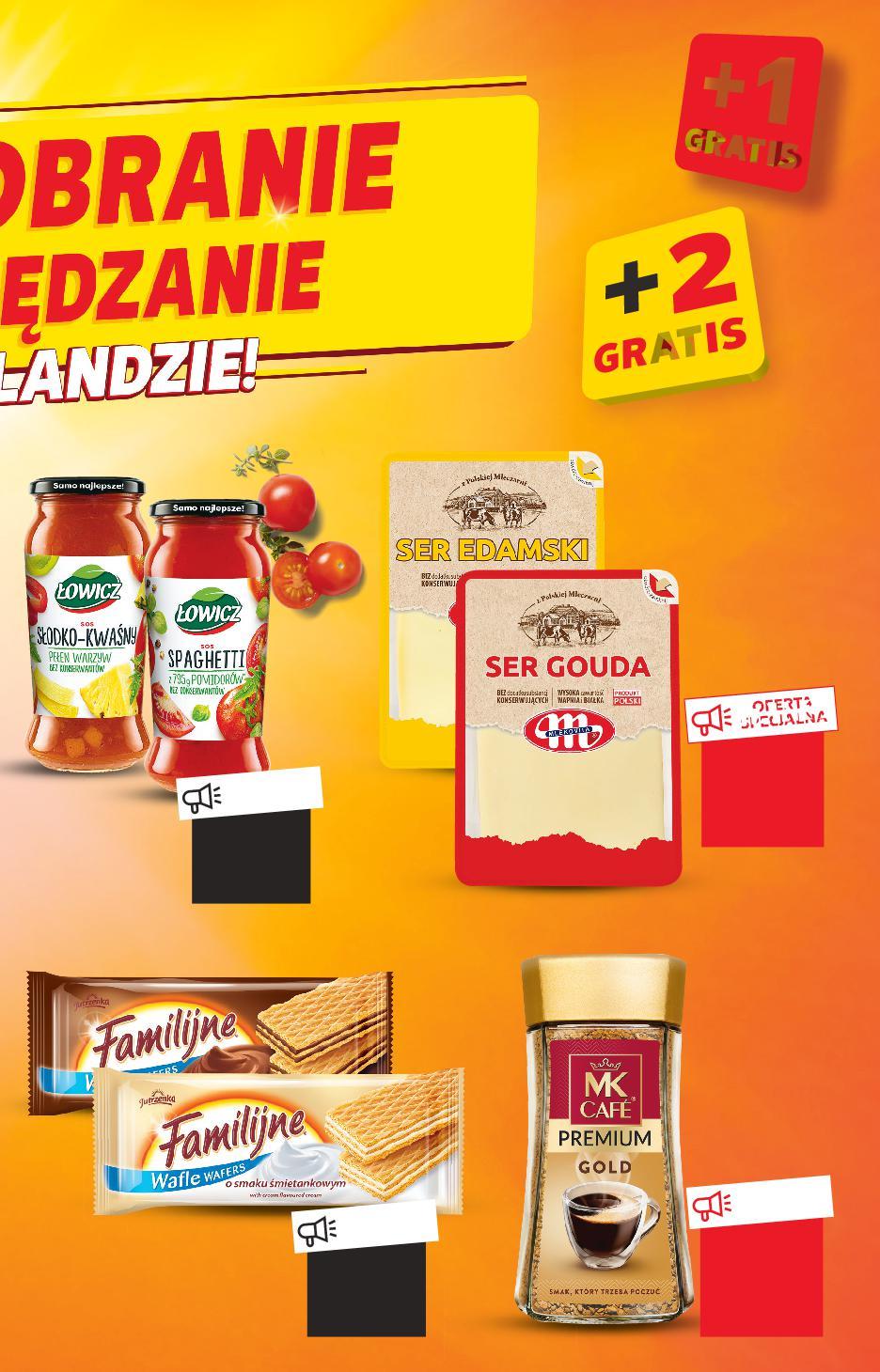 Oferta ważna od 5.10.2023 do 11.10.2023, chyba że na stronach gazety wskazano inaczej, lub do wyczerpania zapasów. Sprzedaż w ilościach detalicznych. Wszystkie podane ceny wyrażone są w złotych polskich. ŁOWICZ Sos różne rodzaje 500 g słoik (=100 G 1,20) JUTRZENKA Wafle Familijne wybrane rodzaje 180 g opakowanie (=100 G 2,22) najniższa cena z 30 dni przed obniżką -18% 20,99 25,75 TANIO tylko 3,99 MK CAFÉ PREMIUM Kawa rozpuszczalna dwa rodzaje 175 g opakowanie (=100 G 11,99) MLEKOVITA Ser w plastrach wybrane rodzaje 500 g opakowanie (=1 KG 23,98) WI TANIO tylko 5,99 TANIO -40% 11,99 cena sprzed pierwszej obniżki 19,99 S13-PL-KW40-LFT-ONLINE_OWIJA_PANO_6_RE-1020-10 13