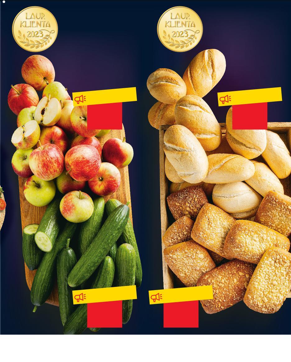 W podziękowaniu za Wasze zaufanie PRZEZ CAŁY WRZESIEŃ oferujemy poniższe produkty W SUPERCENACH. Szanowni Klienci, cieszymy się, że doceniacie jakość naszych artykułów i z przyjemnością po nie sięgacie. Oferta ważna od xxx.2023 do xxx.2023, chyba że na stronach gazety wskazano inaczej, lub do wyczerpania 7.09.2023 do 30.09.2023, chyba że na stronach gazety wskazano inaczej, lub do wyczerpania 2,99 tylko DZIĘKUJEMY cena we wrześniu 4,99 tylko DZIĘKUJEMY cena we wrześniu 2,29 tylko DZIĘKUJEMY cena we wrześniu 0,59 tylko DZIĘKUJEMY cena we wrześniu Jagodzianka 80 g sztuka (=100 G 2,86) Bułka śniadaniowa 70 g sztuka (=100 G 0,84) Polskie ogórki luzem 1 kg Polskie jabłka letnie luzem 1 kg Z GRUNTU POLSKIE Z GRUNTU POLSKIE Najwyższa jakość produktów – świeże owoce i warzywa Najwyższa jakość i świeżość produktów – pieczywo S9-PL-KW36-LFT-K_Card_1_RE-1020-10 9