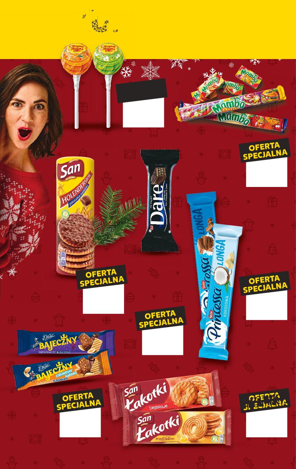 SŁODYCZE OD CZWARTKU 8.12 GDZIE SŁODKIE ŻYCZENIA MAM? Stałeś w kolejce dłużej niż 5 minut, a nie wszystkie kasy były otwarte? Otrzymasz bon o wartości 5 zł! Szanujemy Twój czas! a nie otwarte OFERTA SPECJALNA 12,99 9,99 -12% 3,29 2,89 OFERTA SPECJALNA tylko 2,69 OFERTA SPECJALNA 11,99 8,99 -21% 15,23 11,99 OFERTA SPECJALNA tylko 2,59 CUKRY NYSKIE Herbatniki korzenne z polewą 660 g opakowanie (=100 G 1,52) CUKRY NYSKIE Herbatniki Szarlotka 450 g opakowanie (=100 G 2,00) CUKRY NYSKIE Mieszanka Firmowa 700 g opakowanie (=100 G 1,57) CUKIERNIA P. CHOJECKI Ciasto Miodownik 100 g CUKIERNIA P. CHOJECKI Ciasto piernikowe z powidłami 100 g Zapłać punktami 289¡P OLSZA Sernik Firmowy Premium 100 g S38-PL-KW49-LFT-GEP_1_LI-1020-10 38