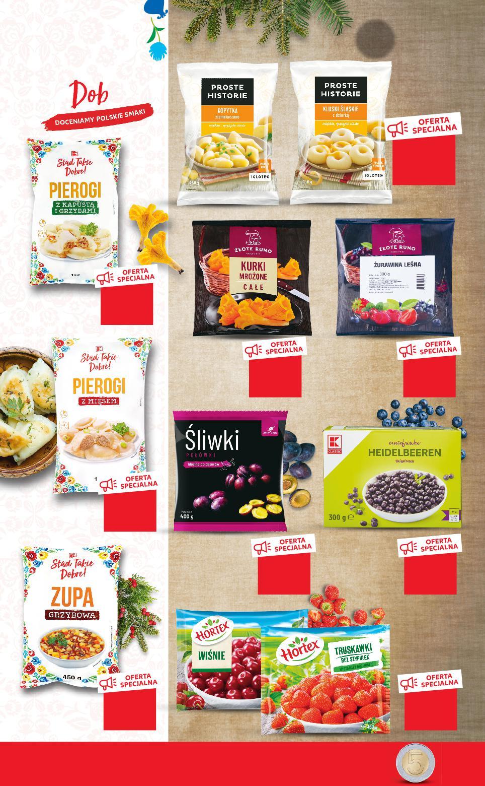 MROŻONKI OD CZWARTKU 8.12 Pierogi z mięsem 1 kg opakowanie -11% 8,99 7,99 -20% 4,99 3,99 -20% 11,99 9,59 -11% 12,37 10,99 -22% 8,99 6,99 -27% 6,89 4,99 -11% 8,99 7,99 -10% 9,99 8,99 -10% 6,99 6,29 ZŁOTE RUNO Żurawina leśna 300 g opakowanie (=1 KG 31,97) Jagody 300 g opakowanie (=1 KG 26,64) ZŁOTE RUNO Kurki całe 300 g opakowanie (=1 KG 36,64) NEW ONE Śliwki bez pestek połówki 400 g opakowanie (=1 KG 9,98) Pierogi z kapustą i grzybami 1 kg opakowanie PROSTE HISTORIE Kluski śląskie z dziurką Kopytka ziemniaczane 450 g opakowanie (=1 KG 11,09) HORTEX Truskawki lub Wiśnie bez pestek 450 g opakowanie (=1 KG 17,76) Zupa grzybowa 450 g opakowanie (=1 KG 13,98) Stałeś w kolejce dłużej niż 5 minut, a nie wszystkie kasy były otwarte? Otrzymasz bon o wartości 5 zł! Szanujemy Twój czas! S30-PL-KW49-LFT-FRP_4_LI-1020-10 30