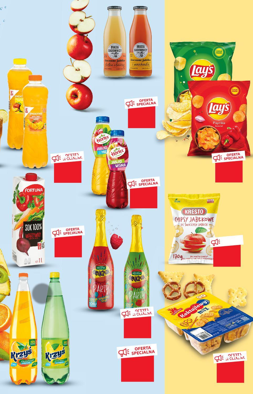 ZEŹWIENIE... ŁYKU GDZIE CHRAPKĘ... NA CHRUPKI MAM? Oferta ważna od 8.12.2022 do 14.12.2022, chyba że na stronach gazety wskazano inaczej, lub do wyczerpania zapasów. Sprzedaż w ilościach detalicznych. Wszystkie podane ceny wyrażone są w złotych polskich. TANIO tylko 7,99 TANIO tylko 1,49 TANIO -16% 5,99 4,99 TANIO tylko 2,99 -10% 4,99 4,49 TANIO tylko 2,49 -33% 8,99 5,99 OFERTA SPECJALNA O A TANIO TA O SP -30% PECJALNA ANIO tylko 13,99 OFERTA TANIO -15% 6,49 5,49 LAY'S Chipsy wybrane smaki 265 g opakowanie (=100 G 2,26) HORTEX Napój niegazowany różne rodzaje 0,5 l butelka (=1 L 2,98) KRESTO Chipsy jabłkowe 170 g opakowanie (=100 G 8,23) Smoothie żółte, pomarańczowe jabłko, dynia, brzoskwinia, mango, marchew 1 l opakowanie BRACIA SADOWNICY Sok tłoczony z jabłek wybrane rodzaje 0,75 l butelka (=1 L 5,99) JURAJSKA Lemoniada lub Oranżada KRZYŚ Napój gazowany różne rodzaje 1,25 l butelka (=1 L 1,99) FORTUNA Sok warzywny 1 l opakowanie HELLENA Oranżada Party 0,75 l butelka (=1 L 10,65) LAJKONIK Koktajlowy mix 230 g opakowanie (=100 G 2,39) S41-PL-KW49-LFT-NAPOJE_RE-1020-10 41
