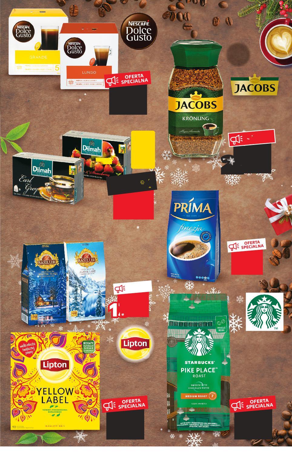 Oferta ważna od 8.12.2022 do 14.12.2022, chyba że na stronach gazety wskazano inaczej, lub do wyczerpania zapasów. Sprzedaż w ilościach detalicznych. Wszystkie podane ceny wyrażone są w złotych polskich. KAWA/HERBATA KUP 2 MNIEJ ZAPŁAĆ -9% 21,99 19,89 -20% 14,99 11,99 OFERTA SPECJALNA -15% 32,99 2 99 9 -24% 49,99 37,99 OFERTA SPECJALNA 17,99 13 99 3 TANIO tylko 8,99 Rabat naliczany przy kasie. przy zakupie 2 szt. /sztuka cena regularna 6,99 - 7% 8,49 DILMAH Herbata czarna aromatyzowana wybrane smaki 20 x 1,5 g opakowanie (cena prom. =100 G 23,30) (cena reg. =100 G 28,30) STARBUCKS Kawa ziarnista różne rodzaje 450 g opakowanie (=100 G 8,45) JACOBS KRÖNUNG Kawa rozpuszczalna 200 g opakowanie (=100 G 14,00) LIPTON YELLOW LABEL Herbata czarna 92 x 2 g opakowanie (=100 G 6,52) NESCAFÉ DOLCE GUSTO Kawa w kapsułkach różne rodzaje 12/16 kapsułek opakowanie (=1 SZT. 1,66/1,25) BASILUR Herbata liściasta wybrane rodzaje 75 g opakowanie (=100 G 18,66) PRIMA Kawa mielona 250 g opakowanie (=100 G 3,60) S39-PL-KW49-LFT-GEP_1_RE-1020-10 39
