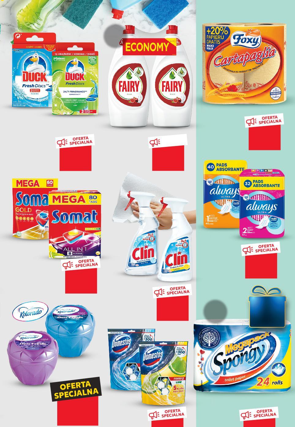 Oferta ważna od 8.12.2022 do 14.12.2022, chyba że na stronach gazety wskazano inaczej, lub do wyczerpania zapasów. Sprzedaż w ilościach detalicznych. Wszystkie podane ceny wyrażone są w złotych polskich. HIGIENA -33% 23,99 15,99 OFERTA SPECJALNA tylko 13,99 -15% 12,99 10,99 -16% 5,99 4,99 TANIO tylko 17,99 przy zakupie 2 szt. /sztuka cena regularna Rabat naliczany przy kasie. 2,69 -25% 3,59 KUP 2 MNIEJ ZAPŁAĆ -23% 29,99 22,99 -21% 50,99 39,99 -22% 8,99 6,99 DOMESTOS POWER 5 Kostki do WC wybrane rodzaje 5 x 55 g opakowanie (=1 KG 58,15) ALWAYS ULTRA Podpaski wybrane rodzaje 28/32/40 szt. opakowanie (=1 SZT. 0,65/0,57/0,45) DUCK FRESH DISCS Żelowe krążki do WC zapas, limonkowy, morski, lawendowy 2 x 36 ml opakowanie (=1 L 152,64) FOXY CARTAPAGLIA Ręczniki kuchenne 2 sztuki opakowanie (=1 SZT. 2,50) KOLORADO Odświeżacz powietrza w żelu wybrane rodzaje 150 g opakowanie