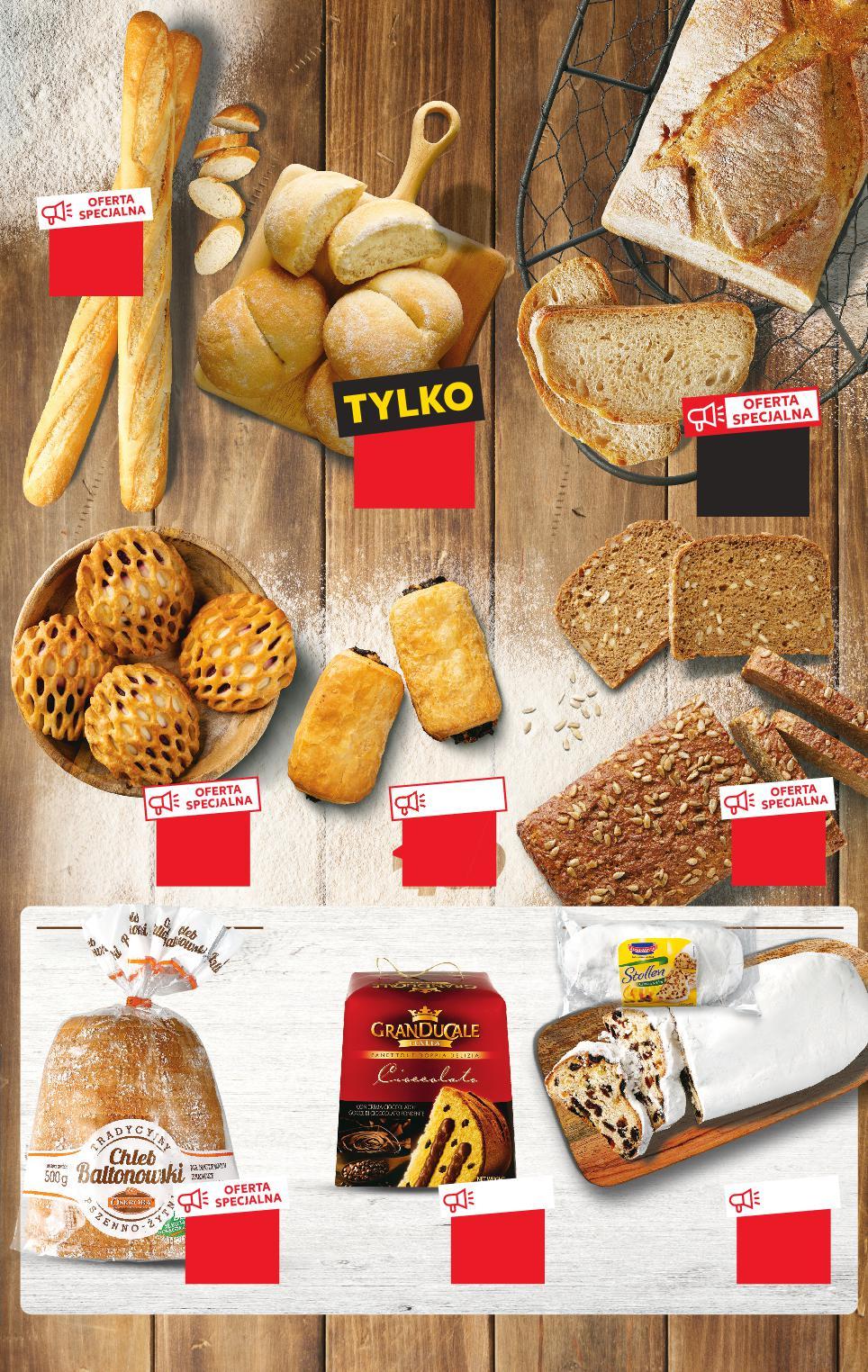 NA STOISKU Z PIECZYWEM ZNAJDZIESZ RÓWNIEŻ Oferta ważna od 8.12.2022 do 14.12.2022, chyba że na stronach gazety wskazano inaczej, lub do wyczerpania zapasów. Sprzedaż w ilościach detalicznych. Wszystkie podane ceny wyrażone są w złotych polskich. * Punkty PAYBACK zostaną naliczone do 21.12.2022 r. -10% 3,69 3,29 OFERTA SPECJALNA tylko 4,99 -21% 1,89 1,49 OFERTA SPECJALNA tylko 21,99 TANIO tylko 1 69 -13% 4,59 3,99 TANIO tylko 2,99 -18% 3,69 2,99 przy zakupie 4 szt. /sztuka cena regularna Rabat naliczany przy kasie. 0,49 -16% 0,59 Chleb typu włoskiego 500 g sztuka (=100 G 0,66) KUCHENMEISTER Strucla marcepanowa 200 g opakowanie (=100 G 2,50) IL VECCHIO Panettone z czekoladą 750 g opakowanie (=100 G 2,94) Bagietka pszenna 220 g sztuka (=100 G 0,68) Pasztecik z pieczarkami 110 g sztuka (=100 G 1,54) Chleb żytnio-pszenny z ziarnami słonecznika 480 g sztuka (=100 G 0,63) Ciastko z malinami i twarożkiem 118 g sztuka (=1 KG 33,82) Bułka poznańska 75 g sztuka (cena prom. =100 G 0,65) (cena reg. =100 G 0,79) KUP ZAPŁAĆ 4 MNIEJ OSKROBA Chleb baltonowski krojony 500 g opakowanie (=100 G 0,60) Rabat przy kasie. Pa z pieczark Ch b ży niozenny z iarnami onecznika 480 g sztuka G GDZIE ŚWIEŻE PIECZYWO MAM? S29-PL-KW49-LFT-FRP_3_RE-1020-10 29
