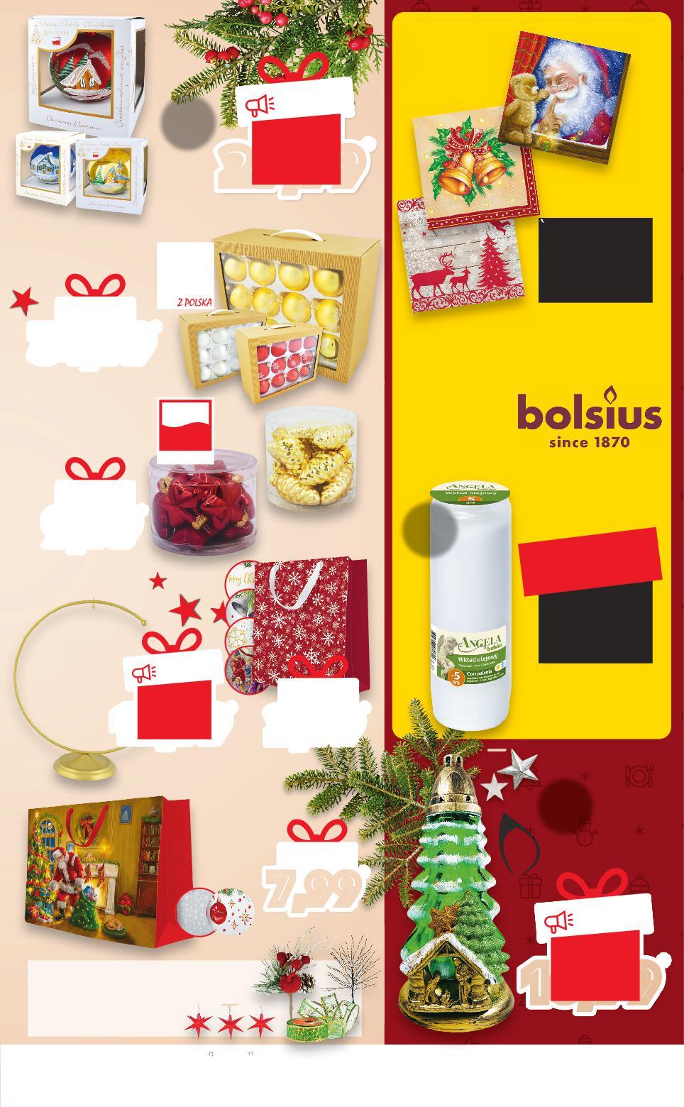 Oferta ważna od 8 12 2022 do 14 12 2022, chyba że na stronach gazety wskazano inaczej, lub do wyczerpania zapasów Artykuł promocyjny może zostać wyprzedany w pierwszych dniach obowiązywania promocji ze względu na ograniczone zapasy. Wszystkie podane ceny wyrażone są w złotych polskich. Artykuły sprzedawane są bez dekoracji. Sprzedaż w ilościach detalicznych. przy zakupie 3 szt. 5,32 /sztuka 7,99 cena regularna -33% lub 532°P Rabat naliczany przy kasie. Wkład olejowy Angela 5 dni przy zakupie 3 opak. 4,66 /opakowanie 6,99 cena regularna -33% lub 466°P Rabat naliczany przy kasie. 16,99 -32% 24,99 lub 1699°P erta Znicz szklany Choinka Szopka gramatura ok. 165 g 50 h 2,99 tylko lub 299°P wym. 20 x 25 x 10 cm 29,99 -40% 49,99 lub 2999°P śr. 15 cm 12,99 -35% 19,99 lub 1299°P VITBIS Stojak metalowy na bombkę o śr. 15 cm złoty lub srebrny VITBIS Bombka szklana różne wzory i kolory 34,99 tylko lub 3499°P śr. 8 cm mała szyszka mała gwiazdka VITBIS Bombka szklana różne rodzaje i kolory 9,99 tylko lub 999°P VITBIS Bombka szklana różne wzory i kolory 12 sztuk KUP GRATIS 2+1 KUP GRATIS 2+1 12 sztuk 20 sztuk Serwetki bożonarodzeniowe (cena prom. = 1 SZT. 0,23) (cena reg. = 1 SZT. 0,35) wym. 33 x 33 cm Więcej w gazecie online Z naszymi ozdobami Twoje święta będą naprawdę olśniewające! naprawdę 7,99 tylko lub 799°P wym. 54 x 44 x 16 cm Torebka prezentowa różne wzory i kolory S55-PL-KW49-LFT-NF_3_RE-1020-10 55