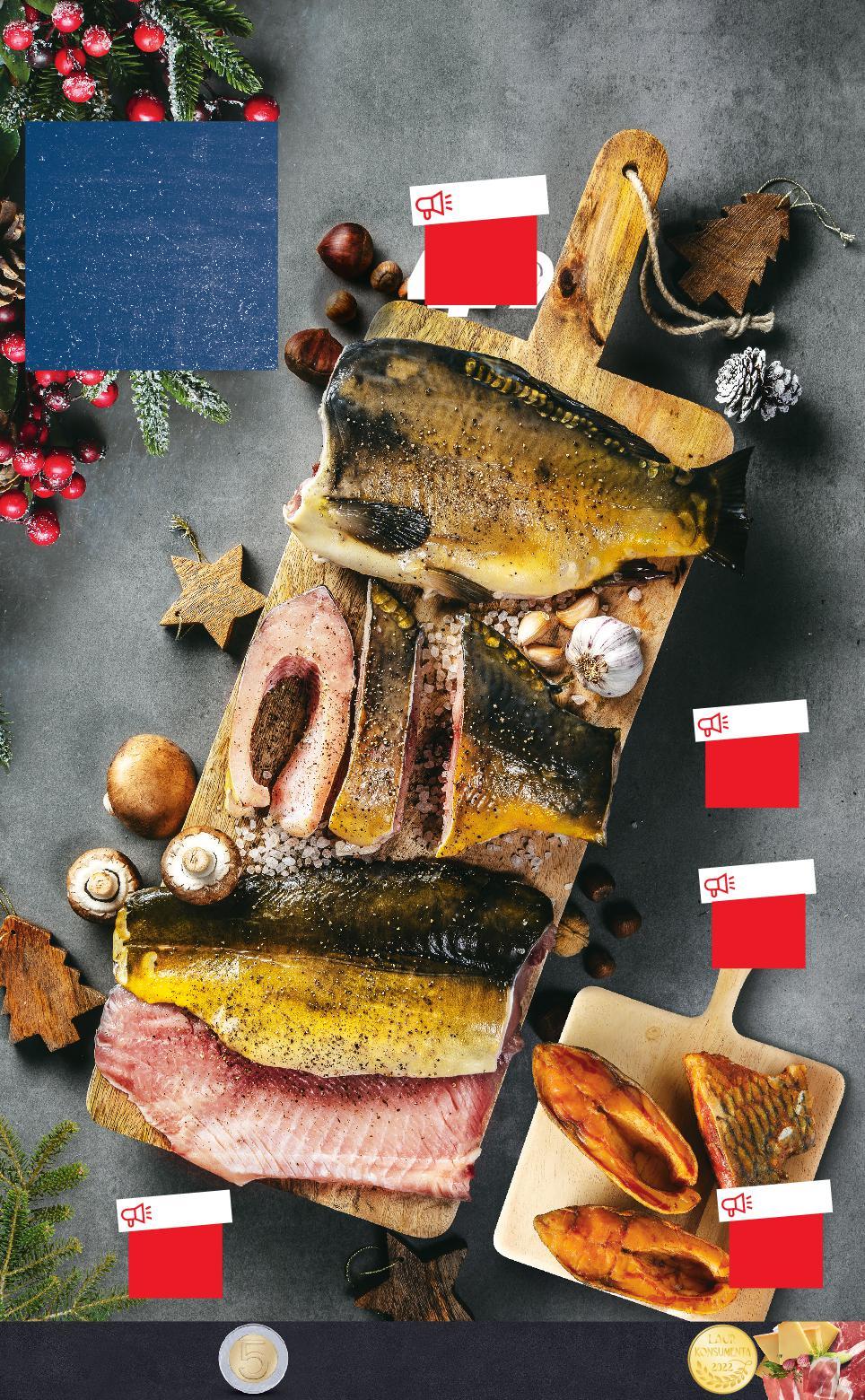 RYBY OD CZWARTKU 8.12 Stałeś w kolejce przy ladzie dłużej niż 5 minut, a nie wszystkie stanowiska przy wagach były obsadzone? Otrzymasz bon o wartości 5 zł! TWÓJ CZAS NA WAGĘZŁOTA! OFERTA SPECJALNA tylko 4,79 OFERTA SPECJALNA tylko 3,49 OFERTA SPECJALNAS XX% XX% PECJALNA tylko 4,99 Karp świeży płat 100 g STOISKO Z OBSŁUGĄ Karp wędzony na gorąco dzwonko 100 g Karp świeży tusza 100 g OFERTA SPECJALNA tylko 6,99 Karp świeży filet nacinany 100 g OFERTA SPECJALNA tylko 4,89 Karp świeży dzwonko 100 g GDZIE WIELKI WYBÓR NA ŚWIĘTA MAM? S18-PL-KW49-LFT-FISCH_LI-1020-10 18