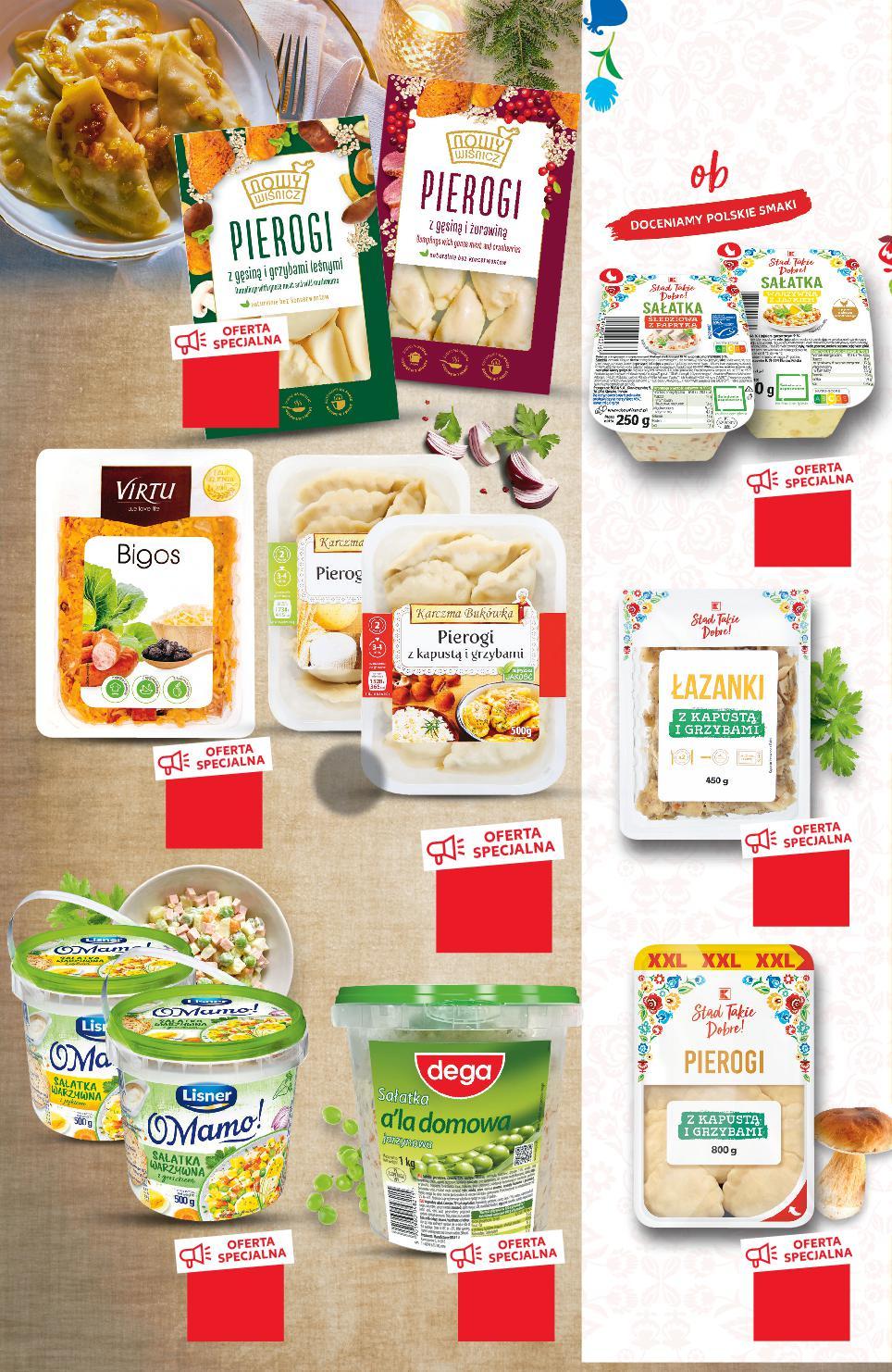 Oferta ważna od 8.12.2022 do 14.12.2022, chyba że na stronach gazety wskazano inaczej, lub do wyczerpania zapasów. Sprzedaż w ilościach detalicznych. Wszystkie podane ceny wyrażone są w złotych polskich. GARMAŻERIA -14% 3,49 2,99 -33% 14,99 9,99 -17% 7,66 6,29 -25% 7,99 5,99 -18% 10,99 8,99 -33% 7,49 4,99 -23% 6,49 4,99 -16% 5,99 4,99 KARCZMA BUKÓWKA Pierogi różne rodzaje 500 g opakowanie (=1 KG 12,58) LISNER O MAMO! Sałatka warzywna z jajkiem lub z groszkiem 500 g opakowanie (=1 KG 9,98) Sałatka warzywna z jajkiem, śledziowa z papryką 250 g opakowanie (=1 KG 11,96) NOWY WIŚNICZ Pierogi z gesiną i grzybami lub gesiną i żurawiną 350 g opakowanie (=1 KG 17,12) VIRTU Bigos 400 g opakowanie (=1 KG 12,48) DEGA Sałatka jarzynowa à la domowa 1 kg opakowanie Łazanki z kapustą i grzybami 450 g opakowanie (=1 KG 11,09) Pierogi XXL z kapustą i grzybami 800 g opakowanie (=1 KG 11,24) S31-PL-KW49-LFT-FRP_4_RE-1020-10 31