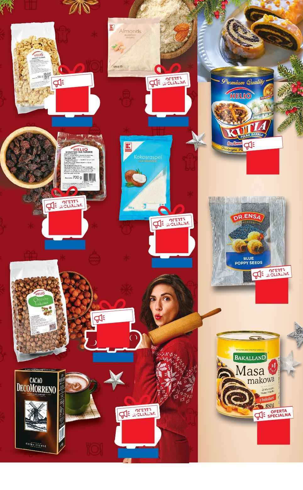 Oferta ważna od 8.12.2022 do 14.12.2022, chyba że na stronach gazety wskazano inaczej, lub do wyczerpania zapasów. Sprzedaż w ilościach detalicznych. Wszystkie podane ceny wyrażone są w złotych polskich. lub 399°P TANIO -16% 4,75 3,99 lub 1999°P OFERTA SPECJALNA TANIO tylko 19,99 3999°P OFERTA SPECJALNAPE0%FERTA CJALNA tylko 39,99 lub 899°P TANIO -20% 11,29 8,99 lub 799°P OFERTA SPECJALNA TANIO tylko 7,99 lub 399°P TANIO -20% 4,99 3,99 lub 549°P OFERTA TANIO -8% 5,99 5,49 lub 779°P TANIO tylko 7,79 Migdały mielone wybrane rodzaje 100 g opakowanie HELIO Orzechy włoskie 500 g opakowanie (=100 G 4,00) HELIO Kutia 850 g puszka (=100 G 0,94) HELIO Rodzynki sułtańskie 700 g opakowanie (=100 G 1,29) Wiórki kokosowe 200 g opakowanie (=100 G 2,00) HELIO Orzechy laskowe 700 g opakowanie (=100 G 5,72) BAKALLAND Masa makowa z bakaliami 850 g puszka (=100 G 0,92) DR. ENSA Mak niebieski 200/250 g opakowanie (=100 G 2,75/2,20) lub lub 599°P TANIO -14% 6,99 5,99 DECOMORRENO Kakao ekstraciemne 150 g opakowanie (=100 G 4,00) S3-PL-KW49-LFT-UMSCHLAG_3-1020-10