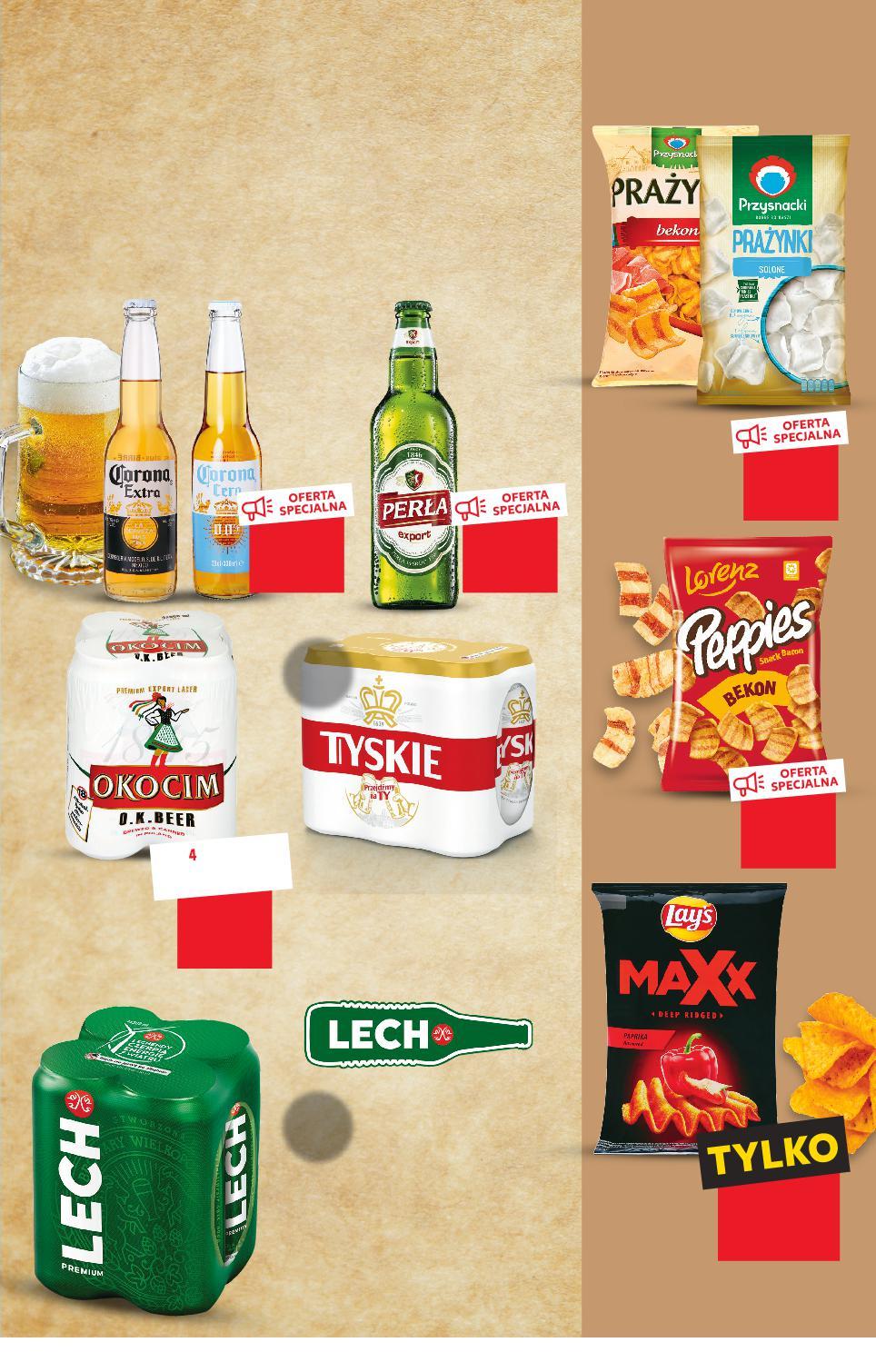 1/2 LITRA PIWA ZAWIERA 25 GRAMÓW CZYSTEGO ALKOHOLU ETYLOWEGO. SPRZEDAŻ ALKOHOLU OSOBOM DO LAT 18 JEST PRZESTĘPSTWEM. Oferta ważna od 8.12.2022 do 14.12.2022, chyba że na stronach gazety wskazano inaczej, lub do wyczerpania zapasów. Sprzedaż w ilościach detalicznych. Wszystkie podane ceny wyrażone są w złotych polskich. -6% 2,99 2,79 -21% 4,47 3,49 -20% 4,99 3,99 -28% 5,29 3,79 2,49 3,69 cena reg. 1 puszka KUP -PAK ZAPŁAĆ PAK 32% MNIEJ MNIEJ przy zakupie 2 szt. /sztuka cena regularna Rabat naliczany przy kasie. 5,49 -29% 7,79 KUP 2 MNIEJ ZAPŁAĆ KUP 2 MNIEJ ZGRZEWKI ZAPŁAĆ przy zakupie 2 zgrz. /puszka cena regularna 2,79 3,89 -28% Rabat naliczany przy kasie. 2,69 1 puszka tylko KUP 6-PAK -PAK ZAPŁAĆ MNIEJ APŁAĆ PERŁA Piwo export 5,2% alk. 0,5 l butelka bezzwrotna (=1 L 5,58) OKOCIM O.K. BEER Piwo 5,6% alk. 4 x 0,5 l puszka 2 l opakowanie (=1 L 4,98) PRZYSNACKI Prażynki solone, bekonowe 110/120 g opakowanie (=100 G 3,18/2,91) PEPPIES Prażynki o smaku bekonu 100 g opakowanie 6 szt. LAY'S MAXX, OVEN BAKED Chipsy wybrane rodzaje 200/210 g opakowanie (cena prom. =100 G 2,75/2,61) (cena reg. =100 G 3,90/3,71) LECH PREMIUM Piwo 5% alk. 4 x 0,5 l puszka 2 l opakowanie (cena prom. =1 L 5,58) (cena reg. =1 L 7,78) TYSKIE GRONIE Piwo 5,5% alk. 6 x 0,5 l puszka 3 l opakowanie (=1 L 5,38) CORONA Piwo 0%, 4,5% alk. 0,33/0,355 l butelka bezzwrotna (=1 L 12,09/11,24) GDZIE ZGRANĄ PACZKĘ MAM? S43-PL-KW49-LFT-GEP_2_RE-1020-10 43