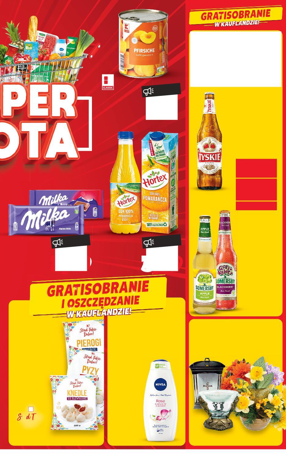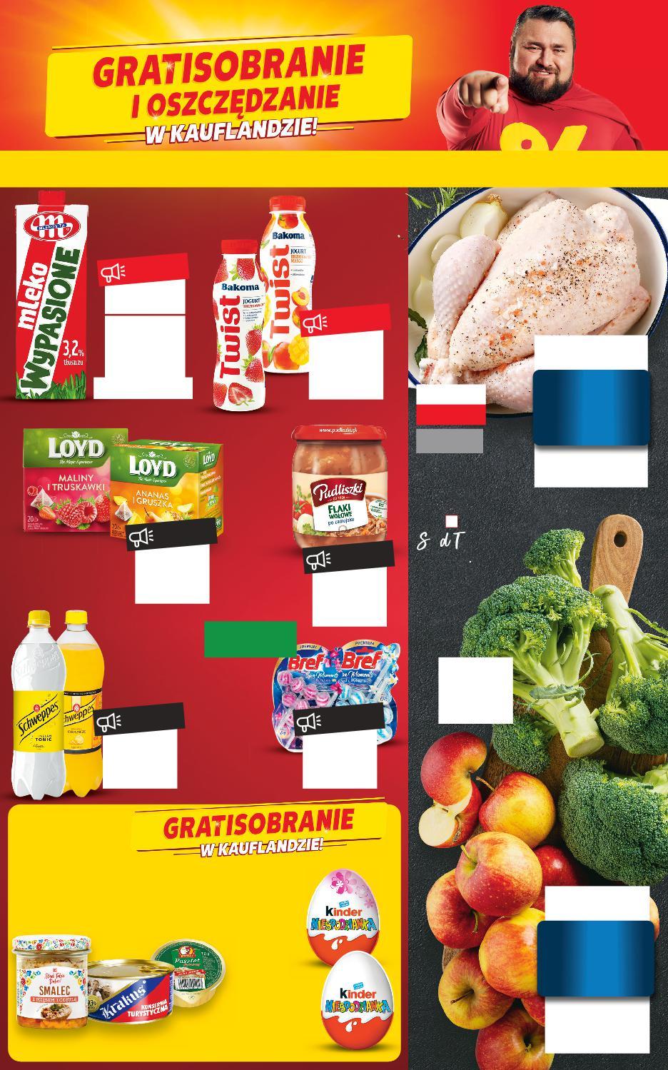 Oferta ważna od 16.10 do 18.10.2023, chyba że na stronach gazety wskazano inaczej, lub do wyczerpania zapasów. Sprzedaż w ilościach detalicznych. Wszystkie podane ceny wyrażone są w złotych polskich. Uwaga! Nie łączymy ofert! Oferta z gazety nie łączy się z innymi ofertami przeprowadzanymi przez Kaufland Zdjęcia poglądowe. WSZYSTKIE KONSERWY MIĘSNE KONSERWY KUP GRATIS 2+1 aga! MOCNY START OD PONIEDZIAŁKU 16.10 DO ŚRODY 18.10 TANIO tylko 12,99 TANIO tylko 3,99 2,49* cena powyżej 12 szt. 3,99 -37% CENA do 12 szt. najniższa cena z 30 dni przed obniżką 3,99 * Cena wyłącznie na pierwszy paragon dziennie, naliczana przy kasie TANIO tylko 8,99 TANIO tylko 3,99 * Cena wyłącznie na pierwszy paragon dziennie, naliczana przy kasie cena bez karty lub powyżej 6 kg z kartą cena sprzed pierwszej obniżki 10,45 Z KARTĄ -33% do 6 kg 6,99* -23% 7,99 * Cena naliczana przy kasie. cena bez karty cena sprzed pierwszej obniżki -42% 1,99 a -48% Z KARTĄ 3,49 1,79* -12% 2,79 cena sprzed pierwszej obniżki 3,19 cena sprzed pierwszej obniżki 3,49 5,98 -41% PUDLISZKI Flaczki wieprzowe, wołowe Bigos, Gulasz wieprzowo-wołowy 500 g słoik (=1 KG 17,98) BREF Zawieszka do WC wybrane rodzaje 2 x 42/2 x 50 /3 x 50 g opakowanie (=1 KG 158,41/ 129,90/86,60) Polskie jabłka Jonagold, Gala, Szampion, luzem 1 kg MLEKOVITA WYPASIONE Mleko UHT 3,2% tł. 1 l karton SCHWEPPES Napój gazowany różne smaki