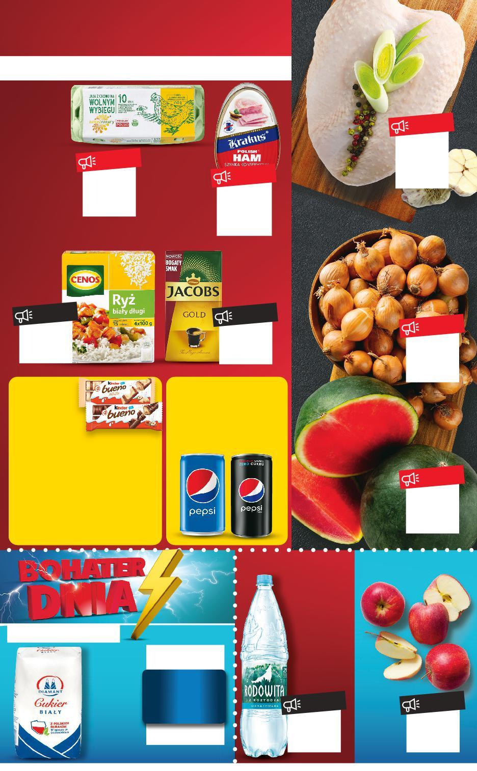 Oferta ważna od 17.07 do 19.07.2023, chyba że na stronach gazety wskazano inaczej, lub do wyczerpania zapasów. Sprzedaż w ilościach detalicznych. Wszystkie podane ceny wyrażone są w złotych polskich. * Oferta poza stałym asortymentem, dostępna wyłącznie do wyczerpania zapasów. KUP GRATIS 2+1 KUP GRATIS 2+1 Oferta poza do zapasów R IS MOCNY START OD PONIEDZIAŁKU 17.07 DO ŚRODY 19.07 WTOREK 18.07 ŚRODA 19.07 PONIEDZIAŁEK 17.07 TANIO tylko 19,99 -22% 8,49 cena sprzed pierwszej obniżki 10,99 -53% 2,99 cena sprzed pierwszej obniżki 6,49 -68% 2,49 cena sprzed pierwszej obniżki 7,99 TANIO tylko 2,99 TANIO tylko 0,99 TANIO tylko 0,99 cena bez karty i powyżej 6 szt. najniższa cena z 30 dni przed obniżką 5,79 -31% Z KARTĄ do 6 szt. 3,99 5,79 przy zakupie 3 szt. /sztuka najniższa cena z 30 dni przed obniżką cena regularna 1,99 2,99 2,99 -33% najniższa cena z 30 dni przed obniżką -25% 11,99 15,99 Cena z kartą do 6 szt. wyłącznie na pierwszy paragon dziennie, naliczana przy kasie. TANIO 11,99* CENA powyżej 3 kg 15,99 CENA do 3 kg Cena do 3 kg wyłącznie na pierwszy paragon dziennie, naliczana przy kasie. Oferta poza stałym asortymentem, dostępna wyłącznie do wyczerpania zapasów. Arbuz bezpestkowy luzem 1 kg SUFLIDOWO ŻÓŁTE Z NATURY Jaja z chowu na wolnym wybiegu 10 sztuk opakowanie (=1 SZT. 0,85) JACOBS GOLD Kawa mielona 500 g opakowanie (=100 G 4,00) Cebula żółta luzem 1 kg Pierś z polskiego kurczaka z kością, ze skórą 1 kg STOISKO Z OBSŁUGĄ KRAKUS Szynka konserwowa z galaretką 455 g puszka (=100 G 2,64) CENOS Ryż biały długi, naturalny brązowy 4 x 100 g opakowanie (=1 KG 7,48)