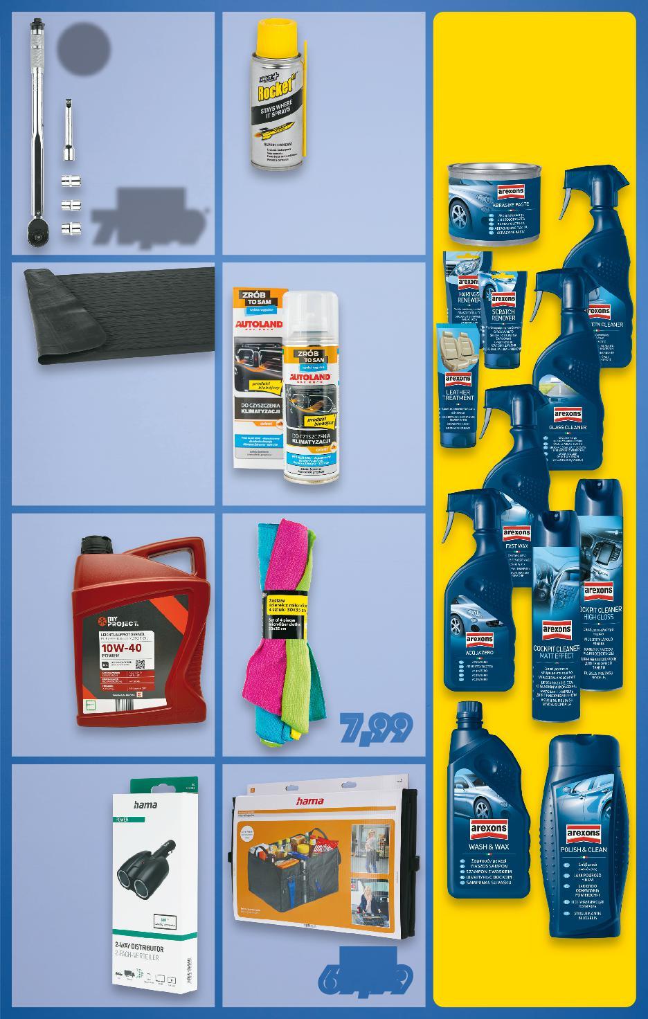 MY PROJECT® Klucz dynamometryczny w zestawie przedłużka 125 mm i nasadki 17 mm, 19 mm, 21 mm regulowany moment obrotowy 80–210 Nm, 79,99 tylko Preparat wielofunkcyjny Rocket TT do smarowania, odrdzewiania, zabezpieczania przed korozją 100 ml 79,99 tylko MY PROJECT® Olej silnikowy 10W-40 (=1 L 16,00) 5 litrów 39,99 tylko 19,99 tylko HAMA Rozdzielacz 2-drożny do gniazda zapalniczki samochodowej, 180°, 12 V 69,99 tylko MY PROJECT® Mata antypoślizgowa do bagażnika z termoplastycznego kauczuku, możliwość przycięcia na indywidualny wymiar wym. 120 x 80 x 0,8 cm AREXONS Kosmetyki samochodowe różne rodzaje sztuka 24,99 1 szt. (=100 ML 6,66) 300 ml 19,99 (=100 ML 6,66) 450 ml 29,99 9,99 tylko 9,99 tylko 7,99 tylko AUTOLAND Spray do czyszczenia klimatyzacji różne aromaty (=100 ML 5,00) MOJE AUTO VIRAGE Zestaw ściereczek z mikrofibry (=1 SZT. 2,00) 200 ml 4 sztuki GRATIS KUP 2+1 MIESZAJ DOWOLNIE HAMA Organizer Torba XL składany wym. 40 x 54 x 27 cm S55-PL-KW28-LFT-NF_3_RE-1020-10 55