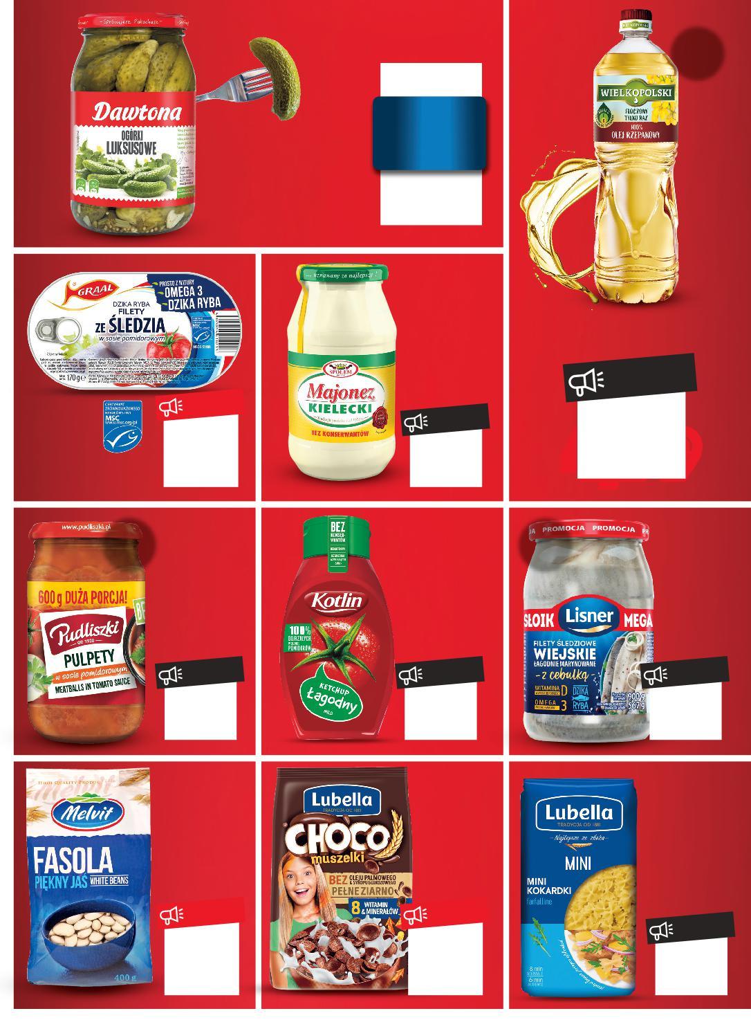 Oferta ważna od 14.03.2024 do 20.03.2024, chyba że na stronach gazety wskazano inaczej, lub do wyczerpania zapasów. Sprzedaż w ilościach detalicznych. Wszystkie podane ceny wyrażone są w złotych polskich. ** Ze zrównoważonych połowów posiadających certyfikat MSC. www.msc.org/pl ** TANIO tylko 4,49 TANIO tylko 4,99 TANIO tylko 7,95 TANIO tylko 13,99 TANIO tylko 7,99 najniższa cena z 30 dni przed obniżką -14% 4,99 5,79 najniższa cena z 30 dni przed obniżką -12% 5,69 6,49 najniższa cena z 30 dni przed obniżką -11% 7,99 8,94 TANIO tylko 3,29 * Cena naliczana przy kasie. cena bez karty najniższa cena z 30 dni przed obniżką -14% 5,99 a -21% Z KARTĄ 6,99 5,55* LISNER Filety śledziowe wiejskie 900/567 g słoik (=1 kg 24,67) GRAAL Filety śledziowe w oleju, w sosie pomidorowym 170 g puszka (=100 g 2,94) LUBELLA Makaron wybrane rodzaje 400 g opakowanie (=1