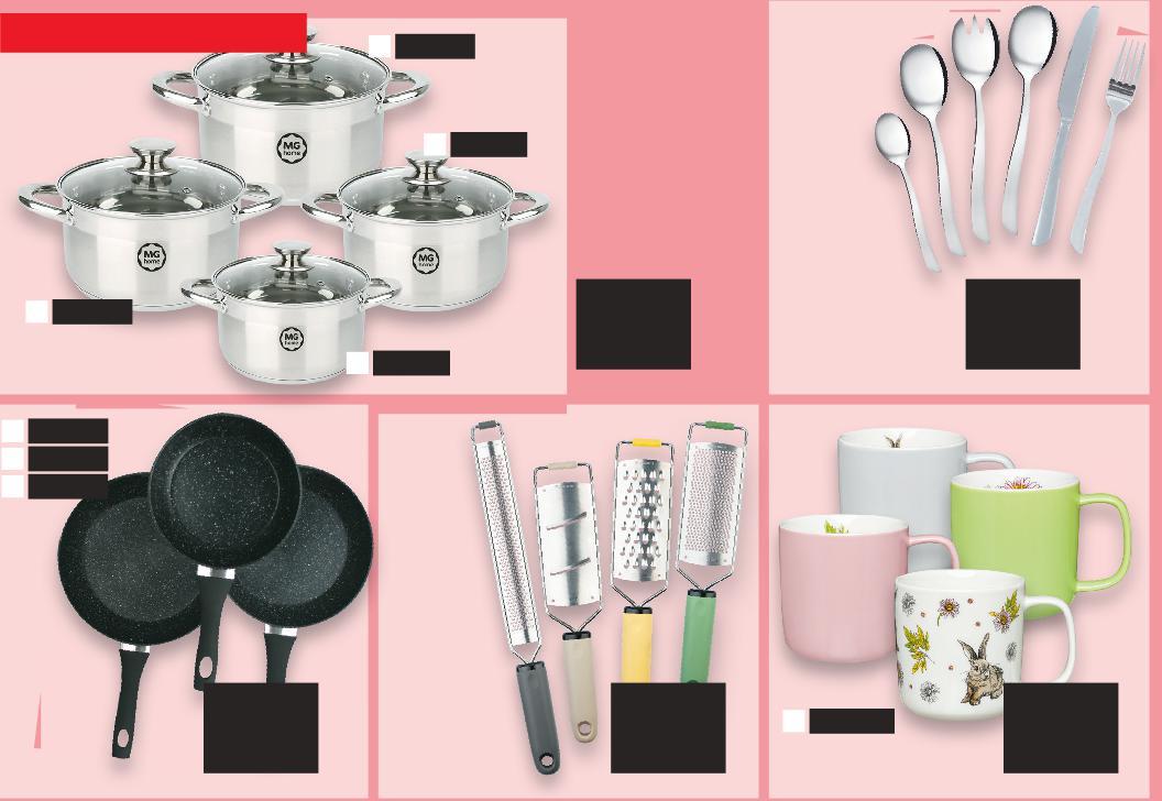 Oferta ważna od 14.03.2024 do 20.03.2024, chyba że na stronach gazety wskazano inaczej, lub do wyczerpania zapasów. Artykuł może zostać wyprzedany w pierwszych dniach obowiązywania oferty ze względu na ograniczone zapasy. Wszystkie podane ceny wyrażone są w złotych polskich. Artykuły sprzedawane są bez dekoracji. Sprzedaż w ilościach detalicznych. 44 99 tylko 99,99 tylko 129,90 tylko MG HOME Patelnia MG HOME Zestaw garnków do wszystkich rodzajów kuchenek MG HOME Zestaw patelni z powłoką non-stick zabezpieczającą przed zarysowaniami i uszkodzeniami śr. 20 cm śr. 24 cm śr. 28 cm śr. 16 cm śr. 18 cm śr. 22 cm śr. 20 cm śr. 24 cm 8 elementów śr. 28 cm 49,99 29,99 tylko SPICE & SOUL® Organizer kuchenny z deską do krojenia 7 elementów 6,99 tylko 169,90 tylko 9,99 tylko Salaterka różne kolory Kubek różne kolory śr. 14 cm poj. 0,37 l 50 elementów Komplet sztućców z wysokiej jakości stali nierdzewnej, 12 noży, 12 łyżek, 12 widelców, 12 łyżeczek, łyżka do sałaty, widelec do sałaty 6,99 tylko SPICE & SOUL® Szatkownica kuchenna lub Tarka kuchenna różne rodzaje sztuka CURVER Pojemnik na żywność 3,49 tylko poj. 0,5 l 2,49 tylko Talerz deserowy szklany śr. 18 cm dostępne różne rodzaje 2,49 tylko Salaterka szklana śr. 17 cm 3,49 śr. 11 cm 3 elementy OD CZWARTKU 14.03 S44-PL-KW11-LFT-NF_3_1_L-1020-10 44