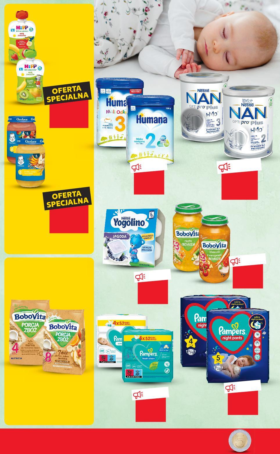 KUP GRATIS 3+1 KUP GRATIS 4+1 Rabat naliczany przy kasie. KUP 2 ZAPŁAĆ MNIEJ Rabat naliczany przy kasie. Stałeś w kolejce dłużej niż 5 minut, a nie wszystkie kasy były otwarte? Otrzymasz bon o wartości 5 zł! Szanujemy Twój czas! OD CZWARTKU 19.01 ARTYKUŁY DLA DZIECI +1 TANIO tylko 39,99 TANIO tylko 4,99 TANIO tylko 21,99 TANIO tylko 49,99 TANIO tylko 29,99 TANIO tylko 9,49 przy zakupie 4 szt. /sztuka cena regularna 4,49 -25% 5,99 przy zakupie 5 szt. /sztuka cena regularna 3,19 -20% 3,99 HUMANA Formuła na bazie mleka wybrane rodzaje 650/750 g opakowanie (=100 G 6,16/5,34) NESTLÉ NAN OPTIPRO PLUS Formuła na bazie mleka 2, 3, 4, 5 800 g opakowanie (=100 G 6,25) PAMPERS NIGHT Pieluchomajtki dla dzieci wybrane rozmiary 19–29 szt. opakowanie (=1 SZT. 1,58–1,03) PAMPERS Chusteczki nawilżane wybrane rodzaje 4 x 52 sztuki opakowanie (=1 SZT. 0,11) BOBOVITA Obiadek dla dzieci wybrane rodzaje 250 g opakowanie (=100 G 2,00) NESTLÉ YOGOLINO Deser mleczny wybrane rodzaje 4 x 100 g opakowanie (=100 G 2,37) GERBER Deser dla dzieci wybrane rodzaje 190 g opakowanie (przy 4 szt. =100 G 2,36) (cena reg. =100 G 3,15) HIPP Mus owocowy BIO wybrane smaki 100 g opakowanie przy zakupie 2 opak. 6,49 /opakowanie 7,99 cena regularna DRUGI PRODUKT TANIEJ 36% BOBOVITA PORCJA ZBÓŻ Kaszka mleczna wybrane rodzaje 210 g opakowanie (przy 2 opak. =100 G 3,09) (cena reg. =100 G 3,80) S40-PL-KW03-LFT-DRP_2_LI-1020-10 40