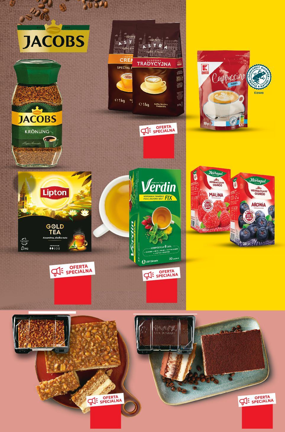 KUP 2 ZAPŁAĆ MNIEJ Rabat naliczany przy kasie. Oferta ważna od 19.01.2023 do 25.01.2023, chyba że na stronach gazety wskazano inaczej, lub do wyczerpania zapasów. Sprzedaż w ilościach detalicznych. Wszystkie podane ceny wyrażone są w złotych polskich. KAWA/HERBATA/CIASTO TANIO tylko 5,99 TANIO 2,39 tylko 2,19 TANIO tylko 44,99 TANIO tylko 32,99 najniższa cena z 30 dni przed obniżką 29,99 dotychczasowa cena 32,99 -9% przy zakupie 2 szt. 2,49 /sztuka 3,36 cena regularna DRUGI PRODUKT TANIEJ 50% przy zakupie 2 szt. 3,99 /sztuka 4,99 cena regularna DRUGI PRODUKT TANIEJ 40% 14,99 TANIO tylko ASTRA Kawa ziarnista różne rodzaje 1000 g opakowanie (=100 G 4,50) JACOBS KRÖNUNG Kawa rozpuszczalna 200 g opakowanie (=100 G 15,00) CUKIERNIE P. CHOJECKI Ciasto tiramisu z mascarpone 100 g CUKIERNIE P. CHOJECKI Ciasto orzechowiec 100 g Kawa Cappuccino różne rodzaje 125 g opakowanie (przy 2 szt. =100 G 1,99) (cena reg. =100 G 2,69) HERBAPOL HERBACIANY OGRÓD Herbata owocowa różne rodzaje 20 torebek x 2,5–4 g opakowanie (przy 2 szt. =100 G 7,98–4,99) (cena reg. =100 G 9,98–6,24) LIPTON Herbata czarna wybrane rodzaje 92/100 torebek x 1,4-2,3 g opakowanie (=100 G 11,64–6,52) VERDIN FIX Herbatka ziołowa wybrane rodzaje 20 torebek x 1,8/2 g opakowanie (=100 G 16,64/14,98) S35-PL-KW03-LFT-GEP_1_RE-1020-10 35