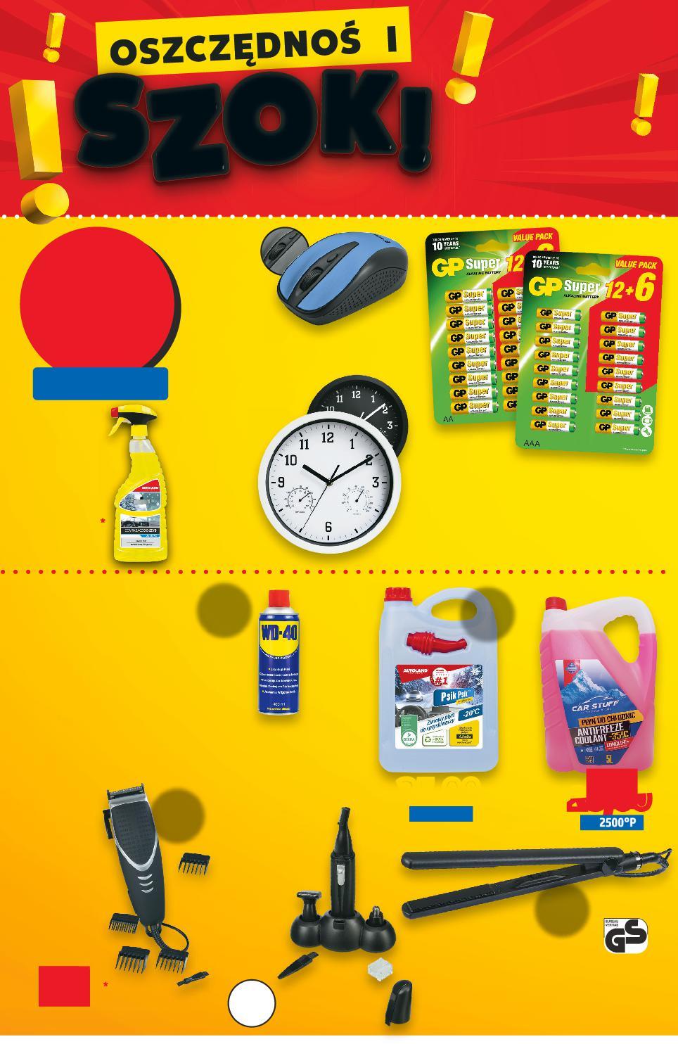 PŁAĆ PUNKTAMI PAYBACK I OSZCZĘDZAJ! Oferta ważna od 19 01 2023 do 25 01 2023, chyba że na stronach gazety wskazano inaczej, lub do wyczerpania zapasów Artykuł może zostać wyprzedany w pierwszych dniach obowiązywania oferty ze względu na ograniczone zapasy. Wszystkie podane ceny wyrażone są w złotych polskich. Artykuły sprzedawane są bez dekoracji. Sprzedaż w ilościach detalicznych. ZŁOTYCH 15 lub 1500°P 15,00 tylko 1500°P AUTOLAND Odmrażacz do szyb do -37°C (=100 ML 2,00) Baterie Super Alkaline AA lub AAA (=1 SZT. 0,83) 18 sztuk śr. 25 cm 15,00 tylko 1500°P 15,00 tylko 1500°P SWITCH ON® Zegar ścienny z termometrem i higrometrem, bateria w zestawie, biały lub czarny TRACER Mysz Joy II RF Nano USB bezprzewodowa, zasilanie bateryjne, moduł RF 2,4 GHz, różne kolory ZŁOTYCH 25 lub 2500°P WD-40 Preparat wielofunkcyjny (=100 ML 6,25) 25,00 tylko 2500°P 400 ml 25,00 tylko 2500°P 4 litry 25,00 tylko CAR STUFF Płyn do chłodnic (=1 L 5,00) 5 litrów AUTOLAND Zimowy płyn do spryskiwaczy Psik Psik zawiera glicerynę, do -20°C (=1 L 6,25) Maszynka do strzyżenia włosów NN-HT-C1 precyzyjne ostrze ze stali szlachetnej, regulacja długości cięcia na urządzeniu, w zestawie cztery nakładki 25,00 tylko 2500°P do strzyżenia ostrze ze stali na urządzeniu, w zestawie cztery moc 10 W 25 00 do L SWITCH ON® Trymer do nosa i uszu NT-C0201 obrotowe ostrza, nasadka konturowa, 2 nasadki grzebieniowe, w zestawie pędzelek do czyszczenia, instrukcja, osłona i bateria Prostownica NN-HS-01 z nieprzywieralną powłoką, automatyczna regulacja temperatury, praktyczny suwakowy włącznik/wyłącznik, obrót o 360° 25,00 tylko 2500°P moc 32 W w zestawie ta i bateria 25,00 tylko 2500°P 15,00 tylko 1500°P 750 ml SETKI OFERT W TWOIM MARKECIE. SPRAWDŹ! SETKI OFERT W TWOIM MARKECIE. SPRAWDŹ! S50-PL-KW03-LFT-NF_4_LI-1020-10 50