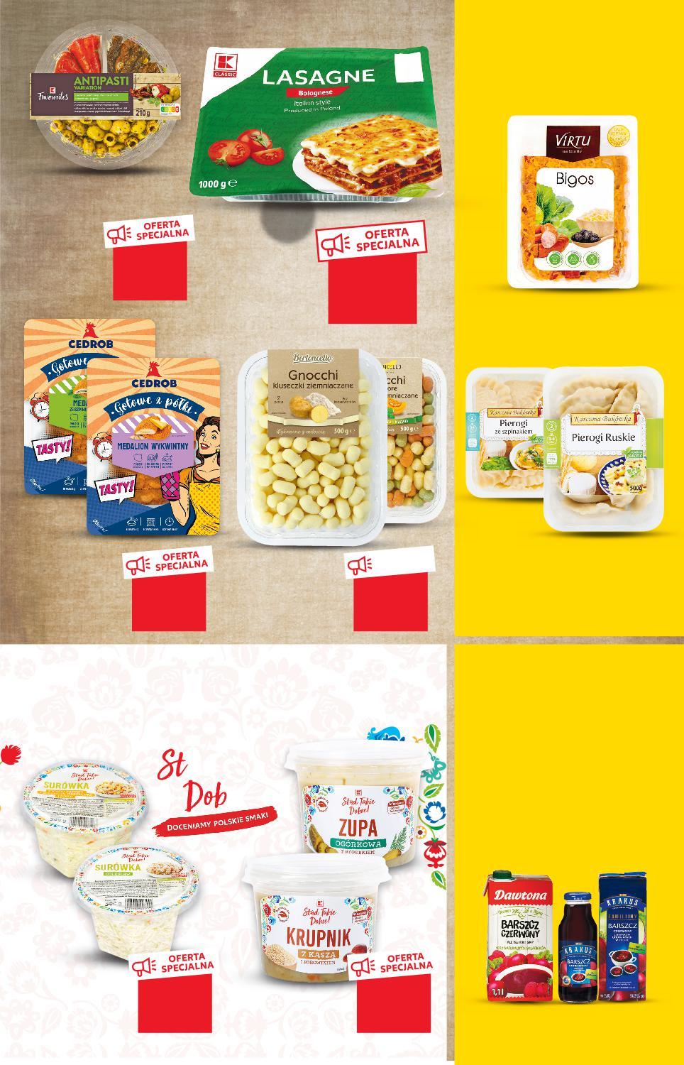 Oferta ważna od 19.01.2023 do 25.01.2023, chyba że na stronach gazety wskazano inaczej, lub do wyczerpania zapasów. Sprzedaż w ilościach detalicznych. Wszystkie podane ceny wyrażone są w złotych polskich. * Oferta z zarejestrowaną kartą PAYBACK. Rabat naliczany przy kasie. GARMAŻERIA TANIO tylko 14,99 TANIO tylko 7,99 TANIO tylko 7,99 TANIO tylko 4,99 TANIO tylko 2,49 TANIO tylko 6,99 KUP 2 ZAPŁAĆ MNIEJ Rabat naliczany przy kasie. Surówka różne rodzaje 300 g opakowanie (=1 KG 8,30) CEDROB Medalion wykwintny z szynką i serem lub ze szpinakiem i serem 375 g opakowanie (=1 KG 21,31) Zupa różne rodzaje 450 g opakowanie (=1 KG 11,09) BERTONCELLO Gnocchi mini, tricolore 500 g opakowanie (=1 KG 13,98) przy zakupie 2 szt. 5,99 /sztuka 7,65 cena regularna DRUGI PRODUKT TANIEJ 42% przy zakupie 2 szt. 4,99 /sztuka 6,49 cena regularna DRUGI PRODUKT TANIEJ 46% KARCZMA BUKÓWKA Pierogi różne rodzaje 500 g opakowanie (przy 2 szt. =1 KG 11,98) (cena reg. =1 KG 15,30) VIRTU Bigos 400 g opakowanie (przy 2 szt. =1 KG 12,48) (cena reg. =1 KG 16,23) Miks antipasti 210 g opakowanie (=1 KG 38,05) WSZYSTKIE BARSZCZE CZERWONE MAREK KRAKUS I DAWTONA -20% Uwaga! Nie łączymy ofert! Oferta z gazety nie łączy się z innymi ofertami przeprowadzanymi przez Kaufland. Zdjęcia poglądowe. Lasagne 1000 g opakowanie (=1 KG 14,99) GDZIE ZAKUPY TAKIE DOBRE MAM? Limit – 6 szt. na osobę dziennie. Rabat naliczany przy kasie. S31-PL-KW03-LFT-FRP_4_RE-1020-10 31