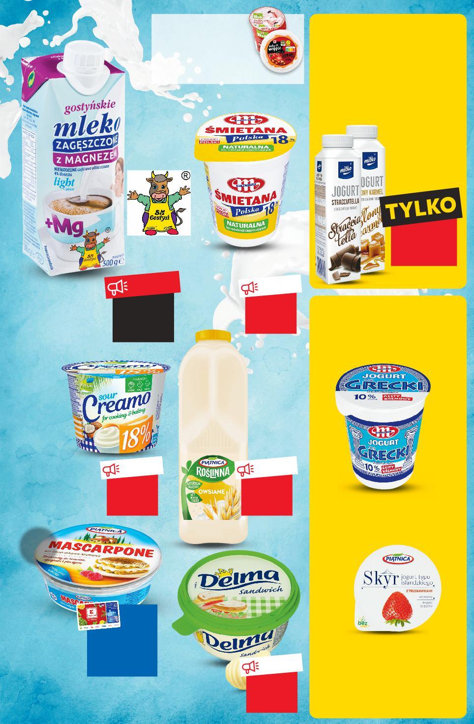 Oferta ważna od 19.01.2023 do 25.01.2023, chyba że na stronach gazety wskazano inaczej, lub do wyczerpania zapasów. Sprzedaż w ilościach detalicznych. Wszystkie podane ceny wyrażone są w złotych polskich. Więcej w gazecie online Sprawdź nasz wybór artykułów BIO i marki K-Take-it-veggie TANIO tylko 4,49 TANIO tylko 4,19 TANIO tylko 3,59 TANIO tylko 6,29 TANIO tylko 4,39 * Oferta z zarejestrowaną kartą PAYBACK. Rabat naliczany przy kasie. 6,99 PAYBACK * CENA Z KARTĄ CENA BEZ KARTY 7,99 SM GOSTYŃ Mleko zagęszczone niesłodzone, light 500 g opakowanie (=1 KG 8,98) OSM PIĄTNICA Napój roślinny owsiany 1 l opakowanie MLEKOVITA Śmietana Polska 18% tł. 400 g opakowanie (=1 KG 8,98) PLANTON CREAMO Produkt roślinny naturalny na bazie mleczka kokosowego 18% tł. 180 g opakowanie (=1 KG 23,28) DELMA SANDWICH Margaryna 450 g opakowanie (=1 KG 9,76) KUP GRATIS 3+1 Rabat naliczany przy kasie. przy zakupie 2 opak. 3,49 /opakowanie 4,19 cena regularna DRUGI PRODUKT TANIEJ 32% MLEKOVITA Jogurt typu greckiego 400 g opakowanie (przy 2 opak. =1 KG 8,73) (cena reg. =1 KG 10,48) KUP 2 ZAPŁAĆ MNIEJ Rabat naliczany przy kasie. przy zakupie 4 szt. /sztuka cena regularna 2,69 -25% 3,59 MILKO Jogurt pitny różne rodzaje 330 ml opakowanie (przy 4 szt. =1 L 8,16) (cena reg. =1 L 10,88) OSM PIĄTNICA Mascarpone 250 g opakowanie (cena z kartą PB =1 KG 27,96) (cena bez karty =1 KG 31,96) OSM PIĄTNICA SKYR Jogurt typu islandzkiego różne rodzaje 150 g opakowanie (przy 2 opak. =1 KG 16,60) (cena reg. =1 KG 19,60) przy zakupie 2 opak. 2,49 /opakowanie 2,94 cena regularna DRUGI PRODUKT TANIEJ 30% S27-PL-KW03-LFT-FRP_3_RE-1020-10 27