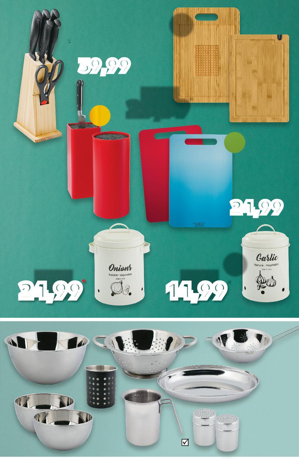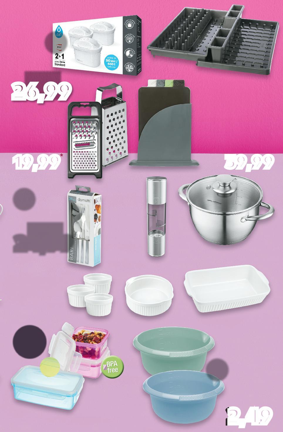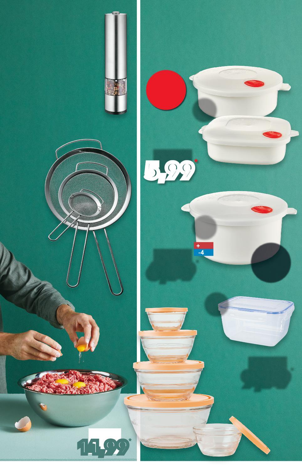 Specjalne oferty tylko w gazetce online! Kupuj w naszych marketach OD CZWARTKU 19.01 14,99 tylko wym. 32 x 11,5 cm poj. 5500 ml SPICE & SOUL® Miska ze stali szlachetnej można myć w zmywarce 34,99 tylko śr. 8 cm śr. 14 cm śr. 20 cm SPICE & SOUL® Zestaw sitek kuchennych można myć w zmywarce 29,99 tylko SPICE & SOUL® Młynek elektryczny do przypraw z wbudowanym oświetleniem, baterie w zestawie 3 sztuki 49,99 tylko SPICE & SOUL® Zestaw szklanych misek różne kolory pokrywek 5 sztuk poj. 1,8 l 9,99 tylko Pojemnik plastikowy z pokrywką wym. 18 x 7 cm poj. 1000 ml 5,99 tylko SPICE & SOUL® Pojemnik do mikrofalówki biały, można myć w zmywarce wym. 18 x 18 x 6,5 cm poj. 1000 ml wym. 18 x 9,5 cm poj. 1500 ml 6,99 tylko SPICE & SOUL® Pojemnik do mikrofalówki biały, można myć w zmywarce GDZIE POMYSŁY NA KUCHNIĘMAM? S44-PL-KW03-LFT-KUCHNIA_LI-1020-10 44