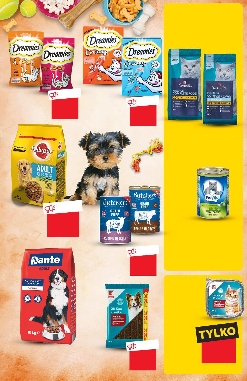 KUP 2 ZAPŁAĆ MNIEJ Rabat naliczany przy kasie. Oferta ważna od 19.01.2023 do 25.01.2023, chyba że na stronach gazety wskazano inaczej, lub do wyczerpania zapasów. Sprzedaż w ilościach detalicznych. Wszystkie podane ceny wyrażone są w złotych polskich. ARTYKUŁY DLA ZWIERZĄT TANIO tylko 7,99 TANIO tylko 4,99 przy zakupie 5 szt. /sztuka cena regularna 1,11 -20% 1,39 TANIO tylko 2,99 TANIO tylko 24,99 TANIO tylko 5,69 33,99 najniższa cena z 30 dni przed obniżką 31,99 dotychczasowa cena względem ceny dotychczasowej 33,99 -5% DREAMIES Przysmak dla kotów wybrane rodzaje 60 g opakowanie (=100 G 8,32) Karma dla kotów wybrane rodzaje 750 g opakowanie (przy 2 opak. =1 KG 10,65) (cena reg. =1 KG 13,32) DREAMIES CREAMY Przysmak dla kotów różne rodzaje 4 x 10/30 g opakowanie (=100 G 19,98/26,63) DANTE Sucha karma dla psów wołowina 10 kg opakowanie (=1 KG 3,20) PREVITAL Mokra karma dla kotów wybrane rodzaje 415 g opakowanie (przy 2 opak. =100 G 0,72) (cena reg. =100 G 0,84) przy zakupie 2 opak. 7,99 /opakowanie 9,99 cena regularna DRUGI PRODUKT TANIEJ 40% przy zakupie 2 opak. 2,99 /opakowanie 3,49 cena regularna DRUGI PRODUKT TANIEJ 28% Pokarm dla kotów różne rodzaje 100 g opakowanie KUP GRATIS 4+1 Rabat naliczany przy kasie. Przysmak dla psów 280 g opakowanie (=100 G 1,07) PEDIGREE Sucha karma dla psów wybrane rodzaje 1,8/2/2,6 kg opakowanie (=1 KG 13,88/12,50/9,61) BUTCHER'S ORIGINAL Karma dla psów wybrane rodzaje 400 g opakowanie (=100 G 1,42) S41-PL-KW03-LFT-DRP_2_RE-1020-10 41