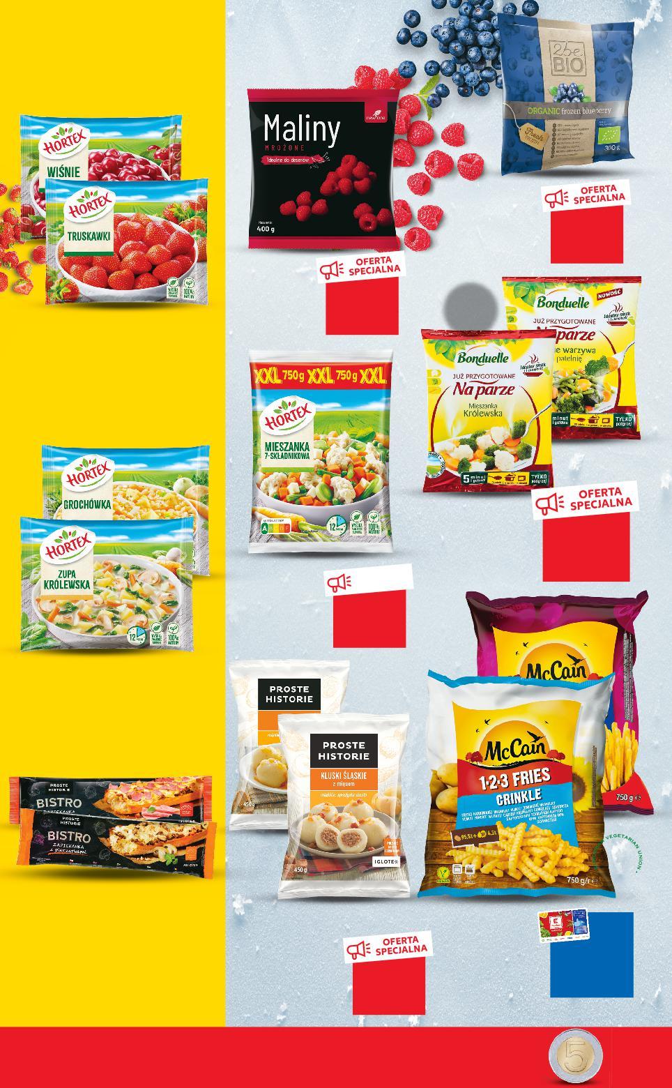 MROŻONKI OD CZWARTKU 19.01 Stałeś w kolejce dłużej niż 5 minut, a nie wszystkie kasy były otwarte? Otrzymasz bon o wartości 5 zł! Szanujemy Twój czas! TANIO tylko 13,99 TANIO tylko 3,99 TANIO tylko 10,99 TANIO tylko 5,99 KUP 2 ZAPŁAĆ MNIEJ Rabat naliczany przy kasie. TANIO tylko 6,99 5,99 PAYBACK * CENA Z KARTĄ CENA BEZ KARTY 6,99 BONDUELLE Warzywa na parze wybrane rodzaje 400 g opakowanie (=1 KG 9,98) NEW ONE Maliny całe 400 g opakowanie (=1 KG 34,98) PROSTE HISTORIE Kluski śląskie lub Pyzy z mięsem, Knedle z truskawkami 450 g opakowanie (=1 KG 13,31) 2BEBIO Jagody Bio 300 g opakowanie (=1 KG 36,64) HORTEX Mieszanka 7-składnikowa 750 g opakowanie (=1 KG 9,32) MCCAIN Frytki karbowane, Golden Longs 750 g opakowanie (cena z kartą PB =1 KG 7,99) (cena bez karty =1 KG 9,32) przy zakupie 2 szt. 7,99 /sztuka 10,99 cena regularna DRUGI PRODUKT TANIEJ 54% przy zakupie 2 szt. 5,49 /sztuka 6,94 cena regularna DRUGI PRODUKT TANIEJ 40% przy zakupie 2 szt. 3,89 /sztuka 4,69 cena regularna DRUGI PRODUKT TANIEJ 34%