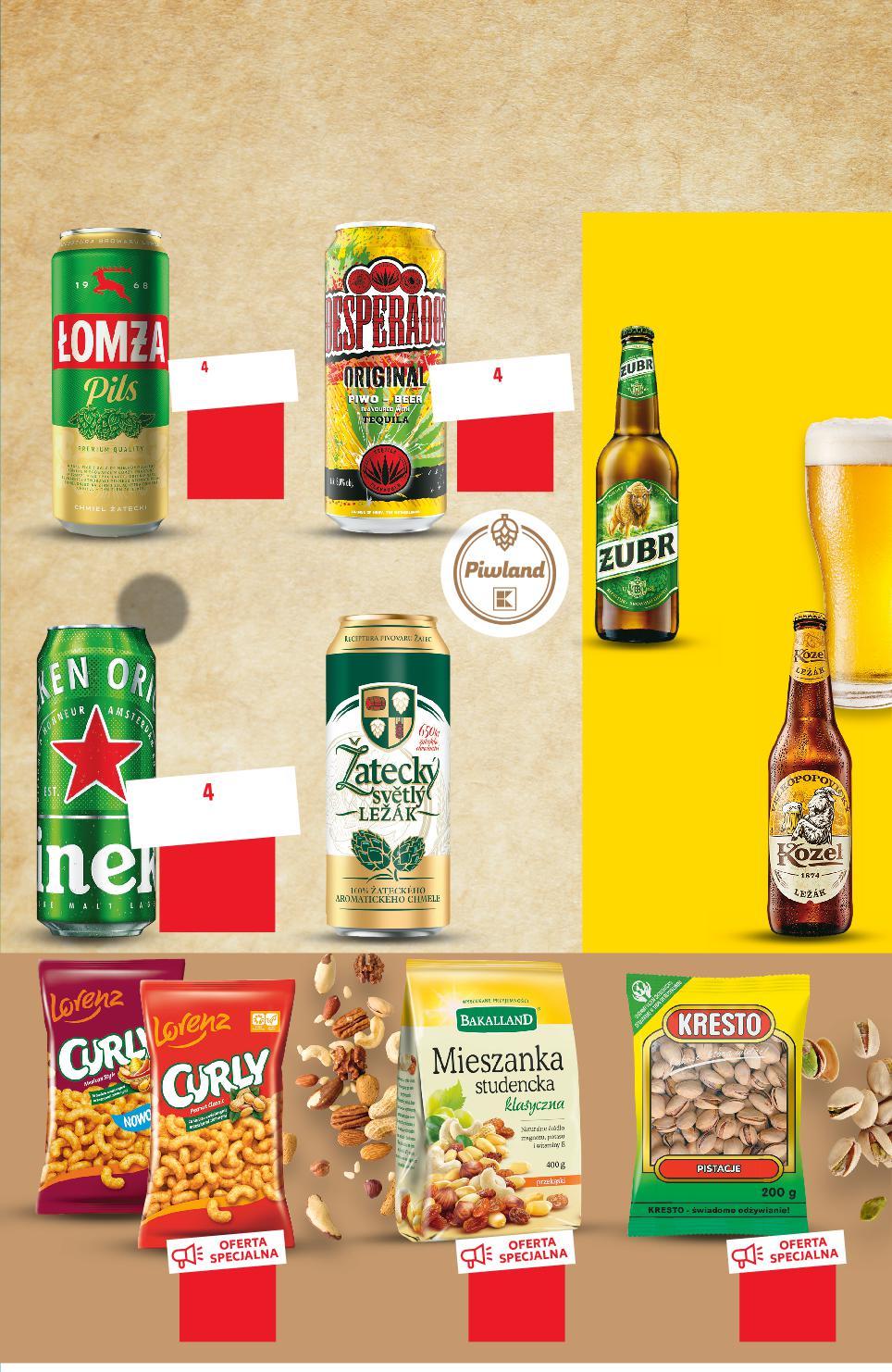 1/2 LITRA PIWA ZAWIERA 25 GRAMÓW CZYSTEGO ALKOHOLU ETYLOWEGO. SPRZEDAŻ ALKOHOLU OSOBOM DO LAT 18 JEST PRZESTĘPSTWEM. Oferta ważna od 19.01.2023 do 25.01.2023, chyba że na stronach gazety wskazano inaczej, lub do wyczerpania zapasów. Sprzedaż w ilościach detalicznych. Wszystkie podane ceny wyrażone są w złotych polskich. KUP 2 ZAPŁAĆ MNIEJ Rabat naliczany przy kasie. 14,99 2,99 1 puszka tylko KUP 6-PAK -PAK ZAPŁAĆ MNIEJ APŁAĆ 2,99 1 puszka tylko KUP -PAK -PAK ZAPŁAĆ MNIEJ APŁAĆ 3,99 1 puszka tylko KUP -PAK -PAK ZAPŁAĆ MNIEJ APŁAĆ TANIO tylko TANIO tylko 3,29 TANIO tylko 13,99 przy zakupie 2 szt. 2,49 /sztuka 2,99 cena regularna DRUGI PRODUKT TANIEJ 32% przy zakupie 2 szt. 3,19 /sztuka 3,79 cena regularna DRUGI PRODUKT TANIEJ 30% 3,29 najniższa cena za 1 puszkę z 30 dni przed obniżką 2,79 dotychczasowa cena 1 puszka 3,29 -15% KUP -PAK ZAPŁAĆ -PAK ZAPŁAĆ HEINEKEN Piwo 0%, 4%, 5% alk. wybrane rodzaje 4 x 0,5 l puszka 2 l opakowanie (=1 L 5,98) BAKALLAND Mieszanka studencka 400 g opakowanie (=100 G 3,75) DESPERADOS Piwo 0%, 3%, 6% alk. wybrane rodzaje 4 x 0,5 l puszka 2 l opakowanie (=1 L 7,98) CURLY Chrupki orzechowe różne rodzaje 120 g opakowanie (=100 G 2,74) 4 4 4 6 KRESTO Pistacje 200 g opakowanie (=100 G 7,00) ŁOMŻA PILS Piwo 6% alk. 4 x 0,5 l puszka 2 l opakowanie (=1 L 5,58) ŽATECKÝ SVĚTLÝ LEŽÁK Piwo 5% alk. 6 x 0,5 l puszka 3 l opakowanie (=1 L 5,98)