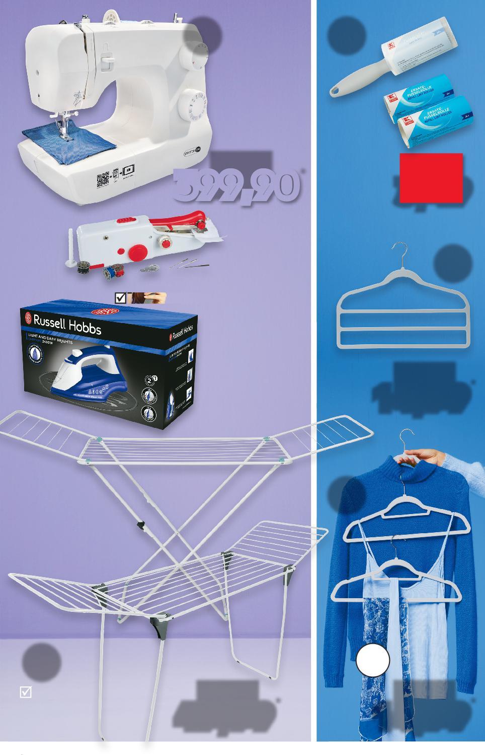 Oferta ważna od 19 01 2023 do 25 01 2023, chyba że na stronach gazety wskazano inaczej, lub do wyczerpania zapasów Artykuł może zostać wyprzedany w pierwszych dniach obowiązywania oferty ze względu na ograniczone zapasy. Wszystkie podane ceny wyrażone są w złotych polskich. Artykuły sprzedawane są bez dekoracji. Sprzedaż w ilościach detalicznych. erta Wieszaki na spodnie 2 sztuki Wieszaki na ubrania różne kolory 10 sztuk 3,49 tylko Rolka do ubrań lub Wkłady do rolki do ubrań 2 sztuki dł. linek do suszenia 18 m Suszarka na pranie 79,99 tylko dł. linek do suszenia 20 m Suszarka na pranie moc 70 W SWITCH ON® Maszyna do szycia SNM 33 C1 33 funkcje ściegu, 4-stopniowe automatyczne obszywanie dziurek, dł. ściegu 0–4,2 mm, szer. ściegu 0–4,8 mm, w zestawie akcesoria do szycia 49,99 tylko na ubrania 14,99 tylko na spodnie 14,99 tylko 399,90 tylko 79,99 tylko ciągły wyrzut pary 35 g uderzenie pary 115 g RUSSELL HOBBS Żelazko Light & Easy Brights 26483-56 kolorowa, ceramiczna stopa z powłoką NOVA Ręczna maszyna do szycia zasilanie bateryjne, w zestawie: 4 baterie AA, igły, szpulka, nici do szycia w 4 baterie nici 39,99 tylko S47-PL-KW03-LFT-NF_2_RE-1020-10 47
