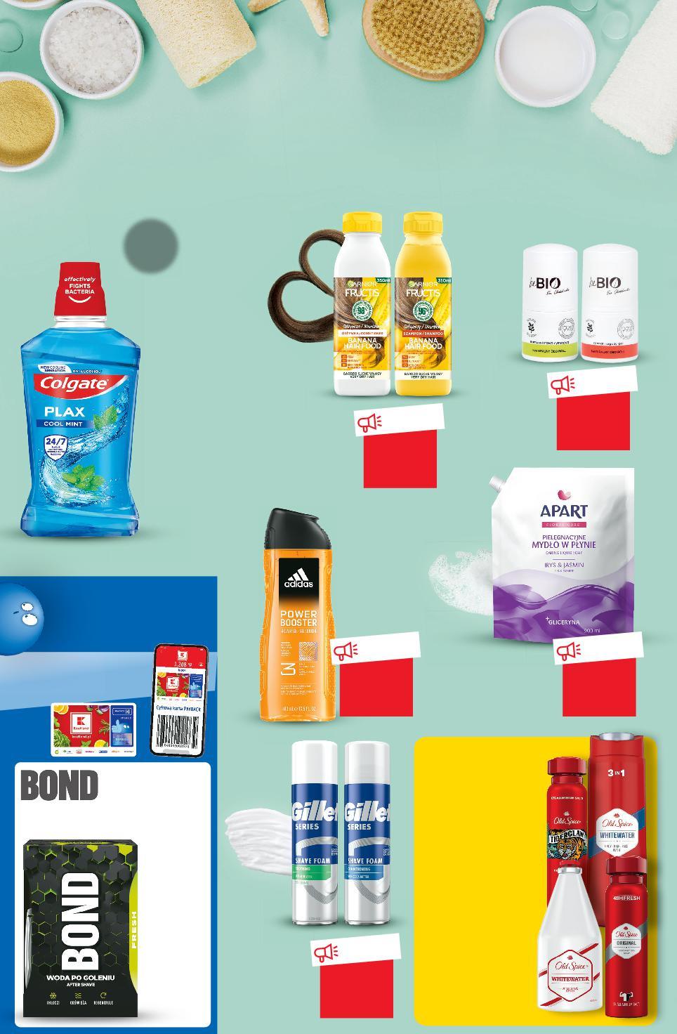 GDZIE DLA KAŻDEGO COŚ KOSMETYCZNEGO MAM? KOSMETYKI OD CZWARTKU 19.01 WSZYSTKIE PRODUKTY MARKI OLD SPICE Uwaga! Nie łączymy ofert! Oferta z gazety nie łączy się z innymi ofertami przeprowadzanymi przez Kaufland. Zdjęcia poglądowe. Rabat naliczany przy kasie. KUP GRATIS 2+1 NAJTAŃSZY W j OSZCZĘDNOŚCI z PAYBACK PARTNER TYGODNIA p i ej O ZĘDNOŚCI WIĘCEJ punktów – więcej z P R TYGODNIA +300 ** TANIO tylko 12,99 TANIO tylko 11,99 TANIO tylko 5,99 TANIO tylko 9,99 TANIO tylko 8,99 Rabat naliczany przy kasie. przy zakupie 2 szt. 9,99 /sztuka 12,99 cena regularna DRUGI PRODUKT TANIEJ 46% GARNIER FRUCTIS Szampon lub Odżywka do włosów wybrane rodzaje 350 ml opakowanie (=100 ML 3,72) BEBIO Deo roll-on wybrane rodzaje 50 ml opakowanie (=100 ML 23,98) APART Mydło w płynie wybrane rodzaje 900 ml opakowanie (=100 ML 0,67) GILLETTE Pianka do golenia wybrane rodzaje 250 ml sztuka (=100 ML 4,00) BOND Woda po goleniu wybrane rodzaje 100 ml opakowanie COLGATE Płyn do płukania ust wybrane rodzaje 500 ml opakowanie (przy 2 szt. =1 L 19,98) (cena reg. =1 L 25,98) ADIDAS Żel pod prysznic wybrane rodzaje 400 ml opakowanie (=100 ML 2,25) KUP 2 MNIEJ ZAPŁAĆ S38-PL-KW03-LFT-DRP_1_LI-1020-10 38