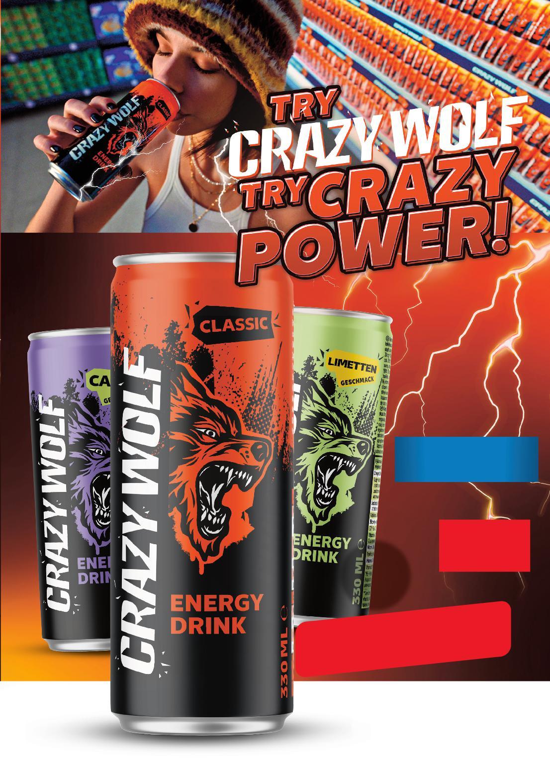CRAZY WOLF Napój energetyzujący różne rodzaje 0,25 l puszka