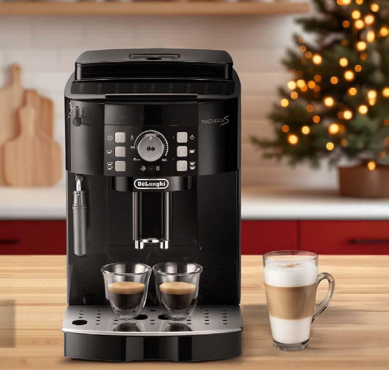 DeLonghi Automatyczny ekspres do kawy Magnifica S, 1450 W możliwość przygotowania: espresso, americano, cappuccino, latte macchiato oraz spienionego mleka zbiornik na wodę: 1,8 L dozownik kawy z regulowaną wysokością