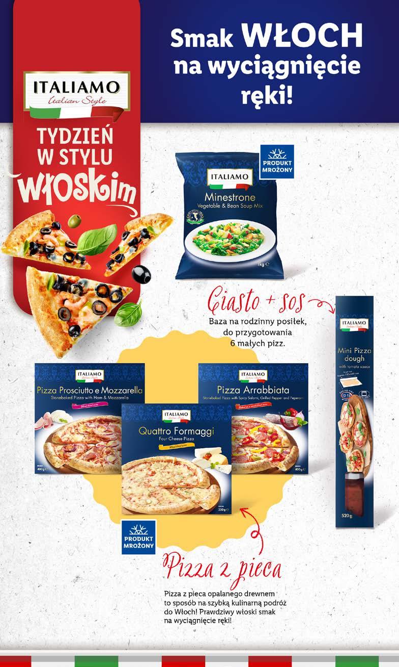 SZYBKO I SMACZNIE JEMY JEMY Zupa 400 g/1 opak. różne rodzaje (14,98 zł/1 kg) SUPERCENA 5,99 ŁAKOMA ŁYŻKA Kolorowe marchewki 300 g/1 opak. (13,30 zł/1 kg) SUPERCENA 3,99 50% TANIEJ DRUGI, TAŃSZY* PRODUKT WYBRANE WARZYWA MROŻONE * Drugi, tańszy lub w tej samej cenie. Limit: 2 opak. na kupon. Każde kolejne opakowanie będzie sprzedawane w cenie regularnej. Szczegóły promocji dostępne w aplikacji Lidl Plus MIKSUJ DOWOLNIE PRODUKT MROŻONY AKTYWUJ KUPON W APLIKACJI 46 Artykuły prezentowane w materiale reklamowym znajdują się w sprzedaży w okresie jego obowiązywania albo według dat podanych przy produktach lub do wyczerpania zapasów. Ceny artykułów bez dekoracji. Sprzedaż artykułów tylko w ilościach detalicznych. Znaki firmowe i towarowe należą do ich właścicieli. R 41/23 OD PONIEDZIAŁKU, 9.10 DO ŚRODY, 11.10