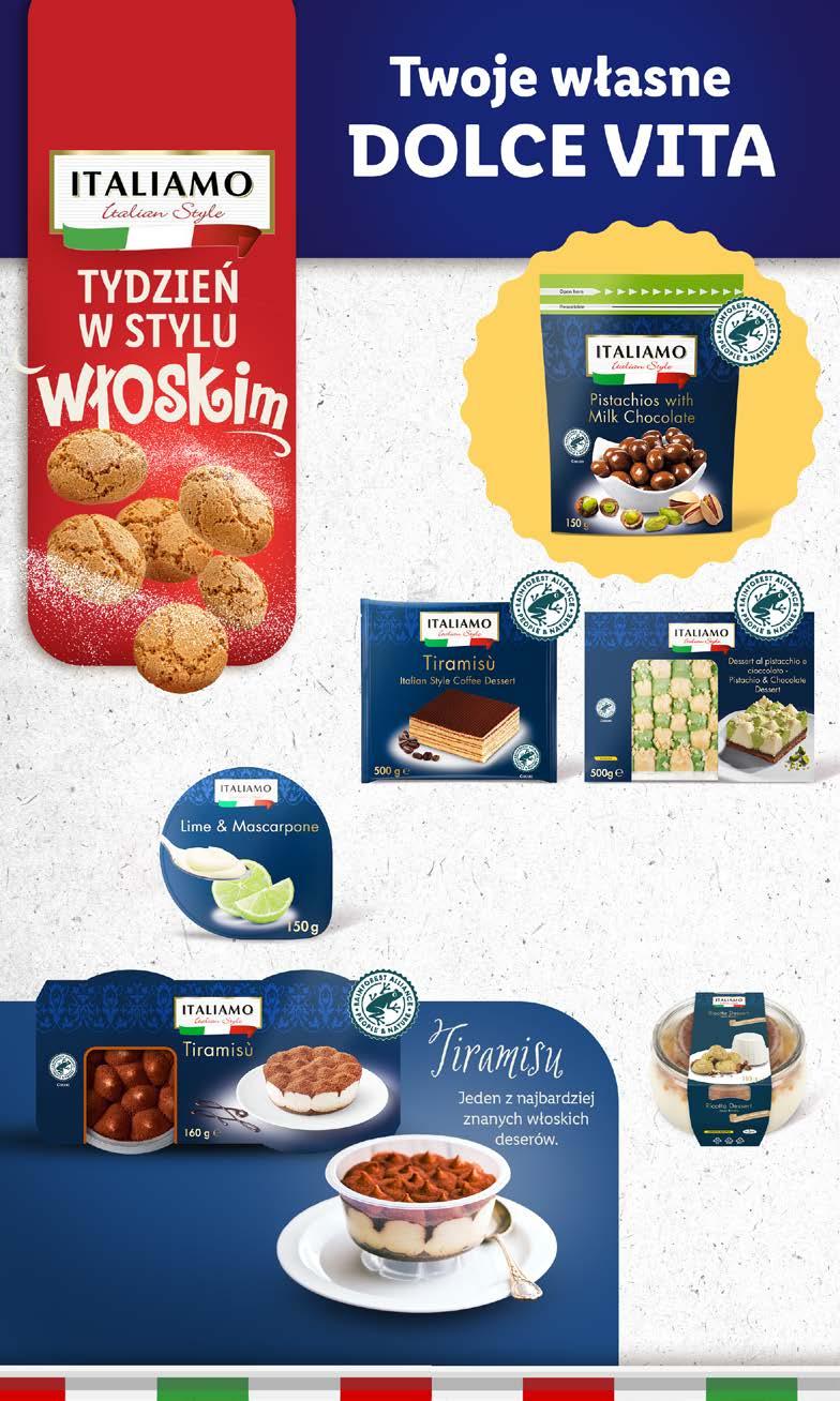 KAWY I HERBATY 40% TANIEJ DRUGI, TAŃSZY* PRODUKT WYBRANE PŁATKI * Drugi, tańszy lub w tej samej cenie. Limit: 2 opak. na kupon. Każde kolejne opakowanie będzie sprzedawane w cenie regularnej. Szczegóły promocji dostępne w aplikacji Lidl Plus TCHIBO Black & White, kawa rozpuszczalna 200 g/1 opak. (12,00 zł/100 g) SUPERCENA 23,99 IRVING Tea Time Kolekcja herbat 30 torebek/1 opak. (0,50 zł/1 torebka) 30 torebek 14,99 * najniższa cena z 30 dni przed obniżką: 21,99 zł/1 opak. (43,98 zł/1 kg) BELLAROM Gold, kawa mielona, 100% arabika 500 g/1 opak. (31,98 zł/1 kg) 27% TANIEJ 15,99 21,99* Nesquik kakao 700 g/1 opak. (27,13 zł/1 kg) SUPERCENA 18,99 Płatki miodowe Goldini, Ringos Kuleczki czekoladowe XXL Płatki zbożowe Space Cookies MIKSUJ DOWOLNIE * najniższa cena z 30 dni przed obniżką: 49,99 zł/1 opak. BELLAROM Gold Crema, kawa ziarnista, 100% arabika 1 kg/1 opak. ** cena za 1 opak. przy zakupie 2 opak.: 37,44 zł/1 opak. 50% TANIEJ DRUGI PRODUKT 37,44** 49,99* DO SOBOTY, 14.10 DO SOBOTY, 14.10 AKTYWUJ KUPON W APLIKACJI Co to jest Nutri-Score? Więcej informacji znajdziesz na https://kimjestesmy.lidl.pl/ zrownowazony-rozwoj/ nutri-score 41 Artykuły prezentowane w materiale