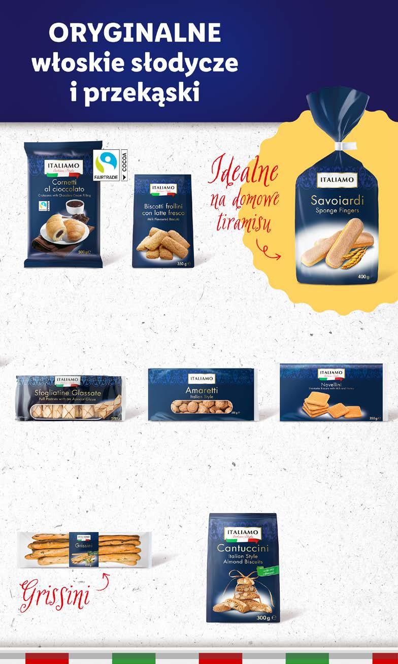 KOCHAMY BAKALIE PRZEKĄSKI * najniższa cena z 30 dni przed obniżką: 8,75 zł/1 opak. (5,83 zł/100 g) ALESTO Migdały prażone i solone 150 g/1 opak. ** cena za 1 opak. przy zakupie 2 opak.: 6,99 zł/1 opak. (4,66 zł/100 g) 40% TANIEJ DRUGI PRODUKT 6,99** 8,75* ALESTO Mango suszone 125 g/1 opak. (9,59 zł/100 g) 125 g 11,99 ALESTO Owoce suszone 100 g, 125 g/1 opak. różne rodzaje (10,99 zł, 8,79 zł/100 g) 100 g, 125 g 10,99 ALESTO Orzechowy mix 200 g/1 opak. różne rodzaje (6,40 zł/100 g) 200 g 12,79 PRZYSNACKI Chipsy 125 g/1 opak. różne rodzaje (4,79 zł/100 g) SUPERCENA 5,99 7 DAYS Bake Rolls 150 g/1 opak. (3,66 zł/100 g) SUPERCENA 5,49 70 g 9,99 ALESTO Pistacje kalifornijskie 70 g/1 opak. prażone i solone lub prażone (14,27 zł/100 g) BEZ DODATKU CUKRU Co to jest Nutri-Score? Więcej informacji znajdziesz na https://kimjestesmy.lidl.pl/ zrownowazony-rozwoj/ nutri-score 42 Artykuły prezentowane w materiale reklamowym znajdują się w sprzedaży w okresie jego obowiązywania albo według dat podanych przy produktach lub do wyczerpania zapasów. Ceny artykułów bez dekoracji. Sprzedaż artykułów tylko w ilościach detalicznych. Znaki firmowe i towarowe należą do ich właścicieli. R 41/23 OD PONIEDZIAŁKU, 9.10 DO ŚRODY, 11.10