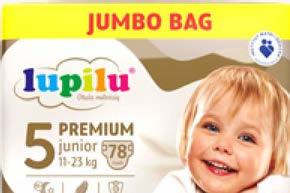 DODATKOWE 10% TANIEJ 10% TANIEJ Z KARTĄ DUŻEJ Z KARTĄ DUŻEJ RODZINY ZOBACZ FILM MIKSUJ DOWOLNIE JUMBO BAG 49,99 LUPILU® PREMIUM Pieluszki 3 midi, 4 maxi, 5 junior lub 6 extra large, jumbo bag 108 szt., 92 szt., 78 szt., 76 szt./1 opak. (0,47 zł, 0,55 zł, 0,65 zł, 0,66 zł/1 szt.)