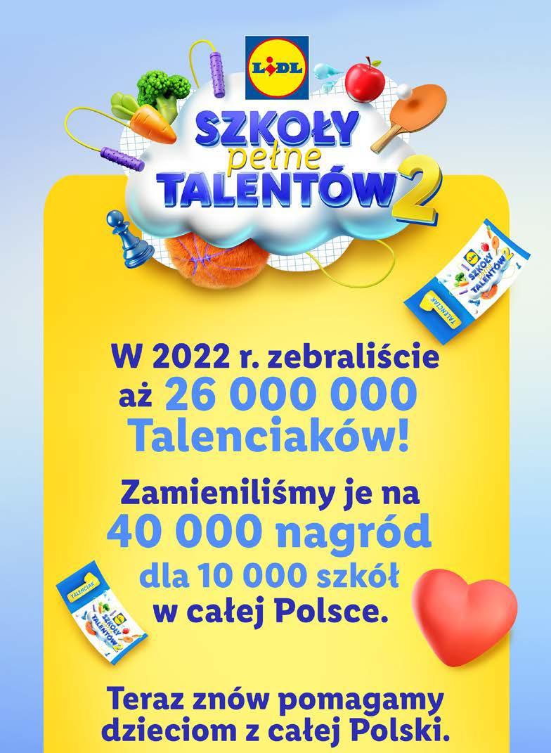 W sklepie Lidl w Białymstoku przy ul. Poleskiej 71 będą obowiązywa wyłącznie promocje prezentowane w materiale reklamowym trwające i rozpoczynające się w dniach od czwartku, 7 września do soboty, 9 września. ypełnij ankie www.lidl.pl/twoja-opinia i zyskaj szans na PE NA Lo er a wa od 0 .0 . 0 r. do .0 . 0 r. Szczegóły i regulamin loterii na: www.lidl.pl/twoja-opinia i na stronie organizatora: www.smolar.pl D 20 x 100 zł, S NAGRODA GŁÓWNA 1000 zł NA ZAKUPY W LIDLU! KUPUJ W LIDLU I WYGRYWAJ 61 880 30 00 SUPERCENA 4,99 LIPTON Ice Tea Zero, herbata mrożona* 1,5 L/1 but. cytryna lub zielona herbata (3,33 zł/1 L) 6-pak 23,94 TYMBARK Sok 100%, 6-pak* 6 x 1 L/1 pak pomarańcza lub jabłko (3,99 zł/1 L) SUPERCENA 6,49 SAN BENEDETTO Napój gazowany, zero cukru 750 ml/1 but. allegra, chinotto lub ginger (8,65 zł/1 L) SUPERCENA 10,99 PREMIUM ROSA Syrop na bazie soku bezpośrednio tłoczonego 250 ml/1 but. imbir, żurawina lub malina (4,40 zł/100 ml) 3,99 ZŁ ZA 1 BUT. W 6-PAKU NAPOJE PREMIERA W LIDLU ZERO CUKRU ZERO CUKRU * Produkt dostępny w wybranych sklepach. Sprawdź dostępność w sklepie w czasie obowiązywania promocji. 26 Artykuły prezentowane w materiale reklamowym znajdują się w sprzedaży w okresie jego obowiązywania albo według dat podanych przy produktach lub do wyczerpania zapasów. Ceny artykułów bez dekoracji. Sprzedaż artykułów tylko w ilościach detalicznych. Znaki firmowe i towarowe należą do ich właścicieli. R 36/23 OD PONIEDZIAŁKU, 4.09