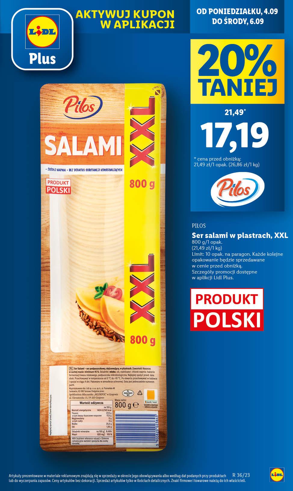 0,47 od za sztukę * Drugi, tańszy lub w tej samej cenie. Limit: 4 opak. na kupon. Każde kolejne opakowanie będzie sprzedawane w cenie regularnej. Szczegóły promocji dostępne w aplikcji Lidl Plus. 34 Artykuły prezentowane w materiale reklamowym znajdują się w sprzedaży w okresie jego obowiązywania albo według dat podanych przy produktach lub do wyczerpania zapasów. Ceny artykułów bez dekoracji. Sprzedaż artykułów tylko w ilościach detalicznych. Znaki firmowe i towarowe należą do ich właścicieli. R 36/23 OD PONIEDZIAŁKU, 4.09 DO ŚRODY, 6.09
