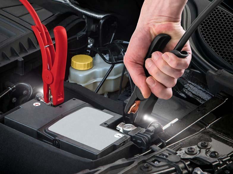 zabezpieczenie przed: odwrotną polaryzacją, zwarciem, przeciążeniem i iskrzeniem akumulator: litowo-jonowy 12 V (12 000 mAh przy 3,2V/34,4 Wh) zintegrowana latarka LED bezpośredni start z wysokim impulsem prądu 500 A/12 V do rozruchu silników benzynowych o poj. maks. 3 l i diesla o poj. maks. 2 l