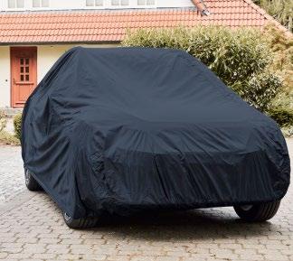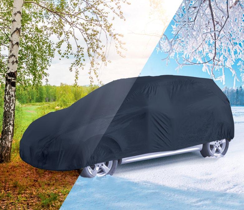 chroni przed śniegiem i lodem oraz zabrudzeniami, liśćmi i żywicą proste mocowanie dzięki systemowi pasów i zatrzasków z wodoodpornego, wytrzymałego poliesteru