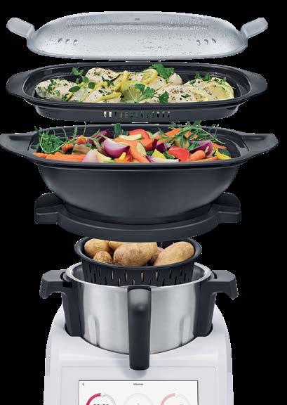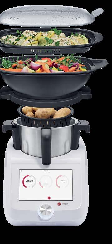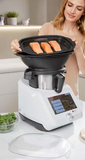 szpatułka ze zdejmowaną silikonową końcówką ekstraduża misa o poj. 3 l wkładka z ostrzami nasadka do mieszania pokrywka z otworem do napełniania i dozownikiem pokrywa wkładka do gotowania na parze nasadka do gotowania na parze funkcja WLANaktualizacje przepisów przy aktywnym koncie użytkownika Wielofunkcyjny robot kuchenny Smart 1050 W + 1000 W z funkcją Wi-Fi • 10-stopniowa regulacja prędkości i dodatkowa funkcja turbo • regulacja temp. od 37 do 130°C • miksowanie: 1000 W, gotowanie 1050 W • timer 99-minutowy pojemnik do mieszania ze stali szlachetnej z maks. pojemnością 3 l wkład do gotowania z miarką w środku nowy, ergonomiczny uchwyt, umożliwiający trzymanie pojemnika jedną ręką Sprytny sposób na rodzinne gotowanie 2399,-* 2499,-** 100 zł TANIEJ TYLKO W PONIEDZIAŁEK 1 zestaw **cena regularna od wtorku, 11.10 *cena obowiązująca tylko w poniedziałek, 10.10.2022 r. do wyczerpania zapasów Artykuły prezentowane w materiale reklamowym znajdują się w sprzedaży w okresie jego obowiązywania albo według dat podanych przy produktach lub do wyczerpania zapasów. Ceny artykułów bez dekoracji. Sprzedaż artykułów tylko w ilościach detalicznych. Znaki firmowe i towarowe należą do ich właścicieli. R 41/22 Od poniedziałku, 10.10 3