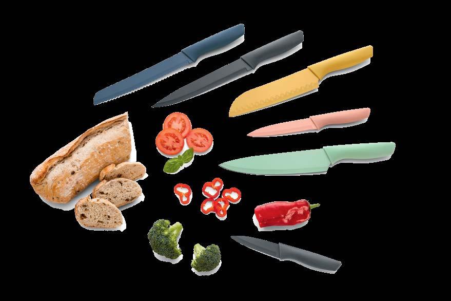 kuchennych • w zestawie: nóż do chleba, kuchenny, do oddzielania kości, santoku, uniwersalny, do obierania • z ochroną ostrza do bezpiecznego przechowywania 69,90 1 zestaw WYSOKA ODPORNOŚĆ NA ŚCIERANIE DŁ. OSTRZA OK. 19,5 CM DŁ. OSTRZA OK. 19,5 CM DŁ. OSTRZA OK. 19,5 CM DŁ. OSTRZA OK. 17,5 CM DŁ. OSTRZA OK. 12,5 CM DŁ. OSTRZA OK. 9 CM PRZYSTOSOWANE DO MYCIA W ZMYWARCE