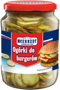 MCENNEDY Ogórki do burgerów 720 ml (360 g po odsączeniu)/1 opak. 1 kg = 15,25 (wg masy netto po odsączeniu) SUPERCENA 5,49 Zasmakuj