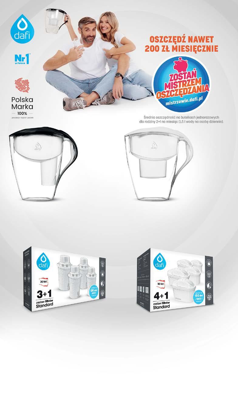 • jeden, wymienny co miesiąc, filtr dostarcza do 200 l wody • usuwa z wody kranowej smak i zapach chloru oraz redukuje twardość wody *Marka najczęściej wybierana w kategorii produktów filtrujących wodę kranową, źródło: FORMASTER S.A. na podstawie badania przeprowadzonego przez Publicis Groupe, październik 2021 19,99 1 szt. 19,99 1 szt. 34,99 1 zestaw 49,99 1 zestaw Artykuły prezentowane w materiale reklamowym znajdują się w sprzedaży w okresie jego obowiązywania albo według dat podanych przy produktach lub do wyczerpania zapasów. Ceny artykułów bez dekoracji. Sprzedaż artykułów tylko w ilościach detalicznych. Znaki firmowe i towarowe należą do ich właścicieli. R 43/22 9 Od poniedziałku, 24.10